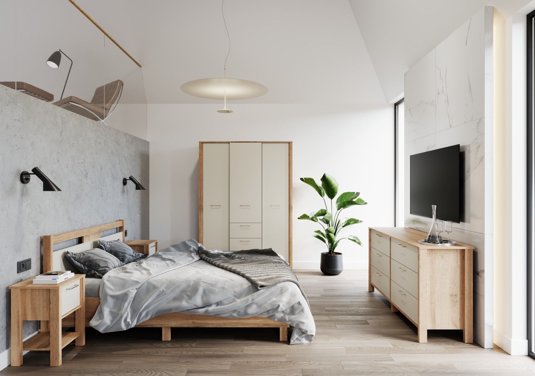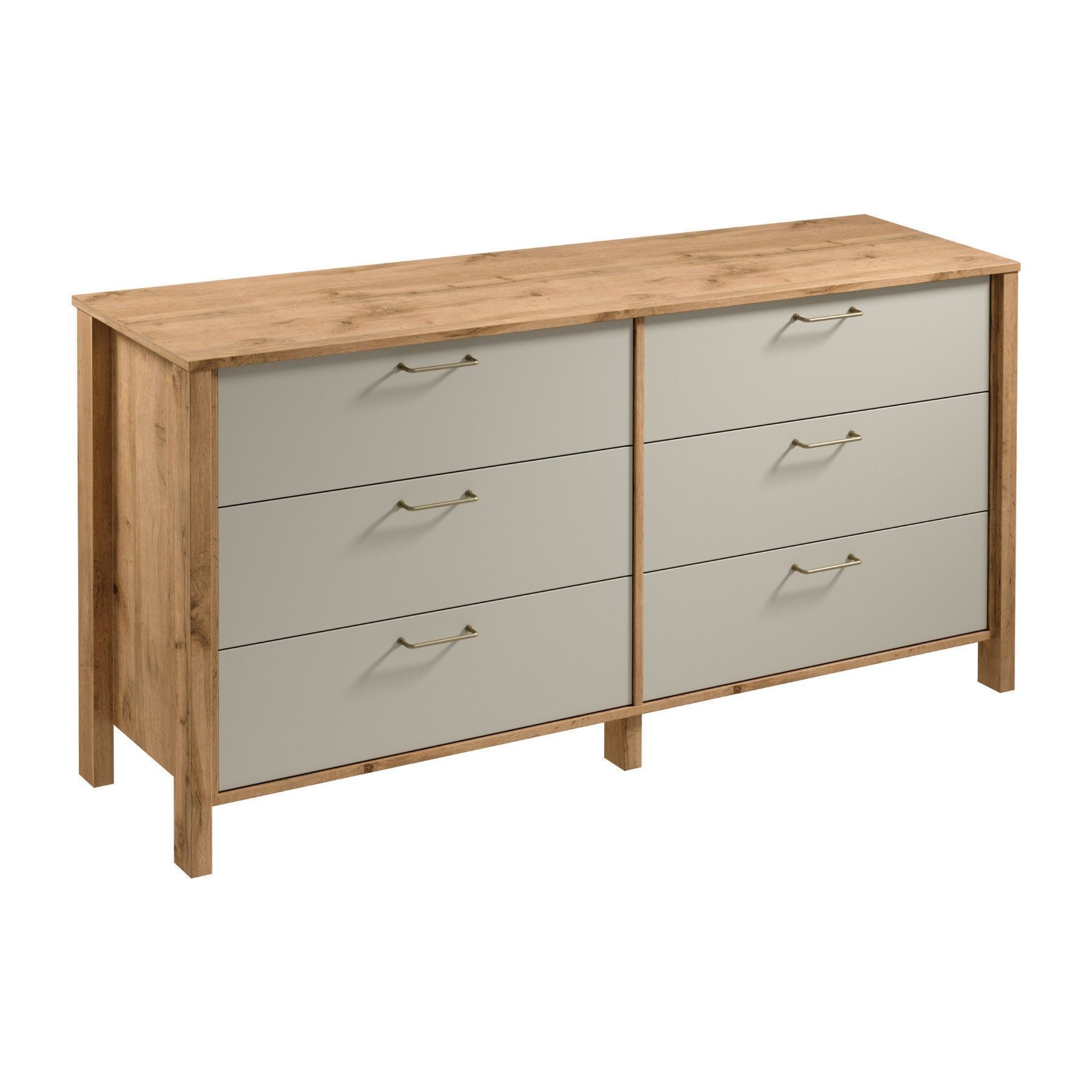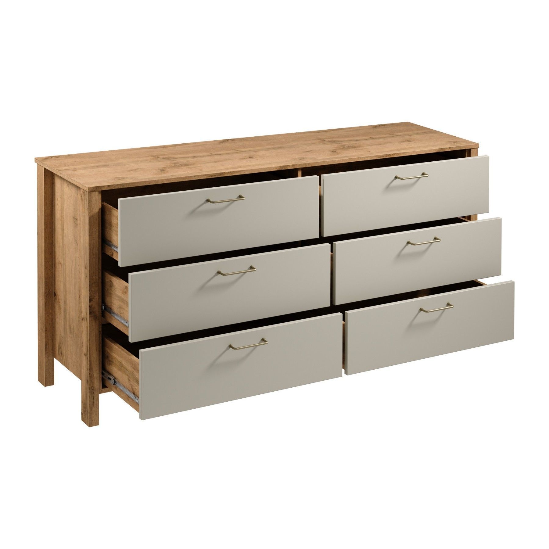 AX LIVING Kommode mit Schubladen Iseonia K6S Modern Eiche Wotan/Beige