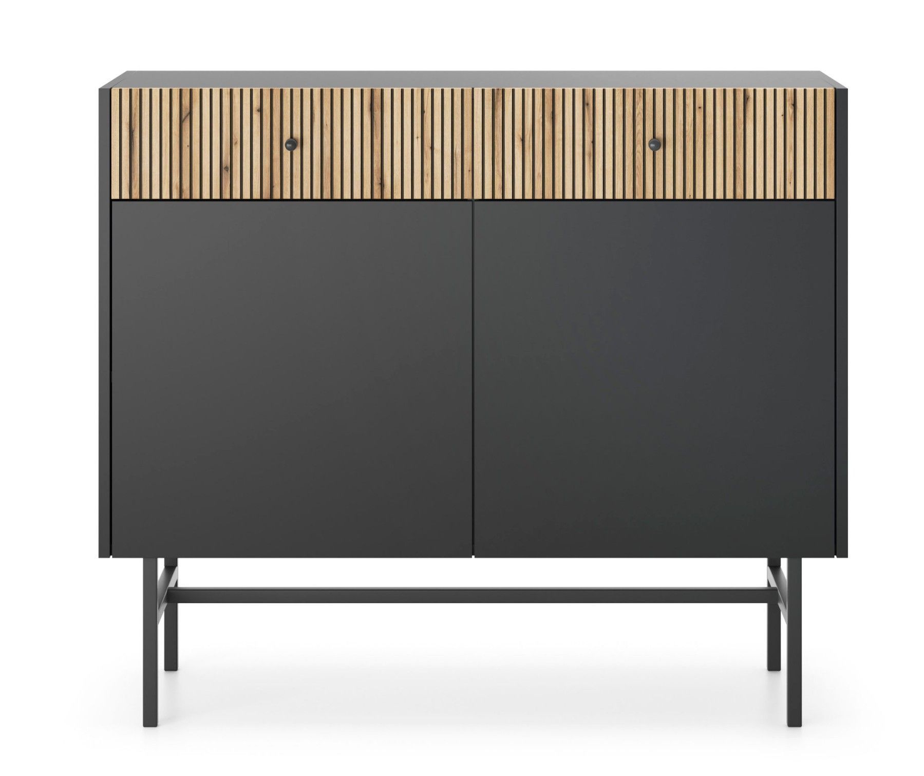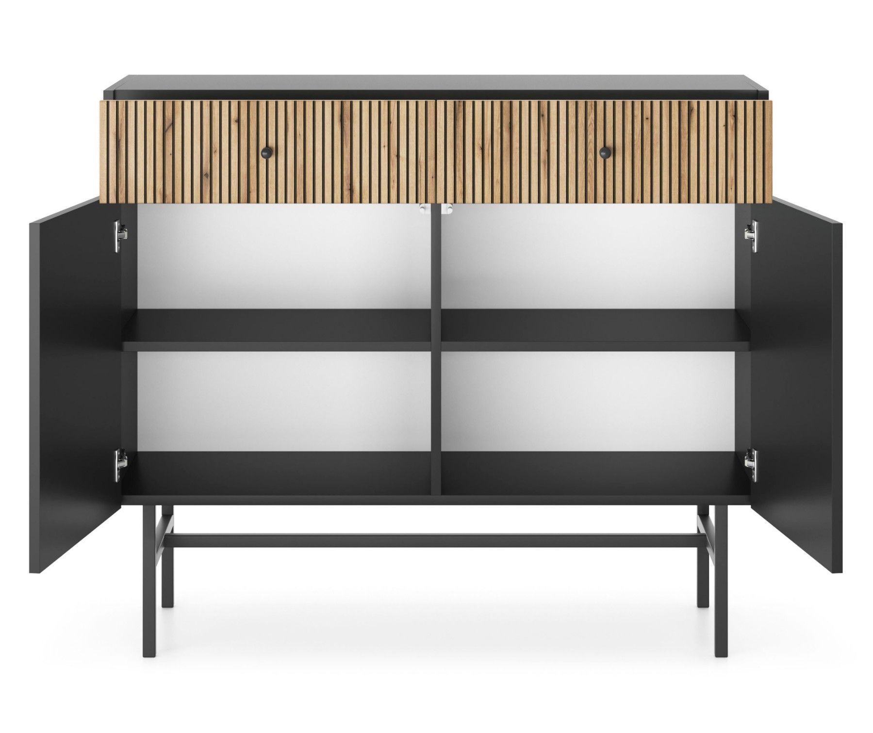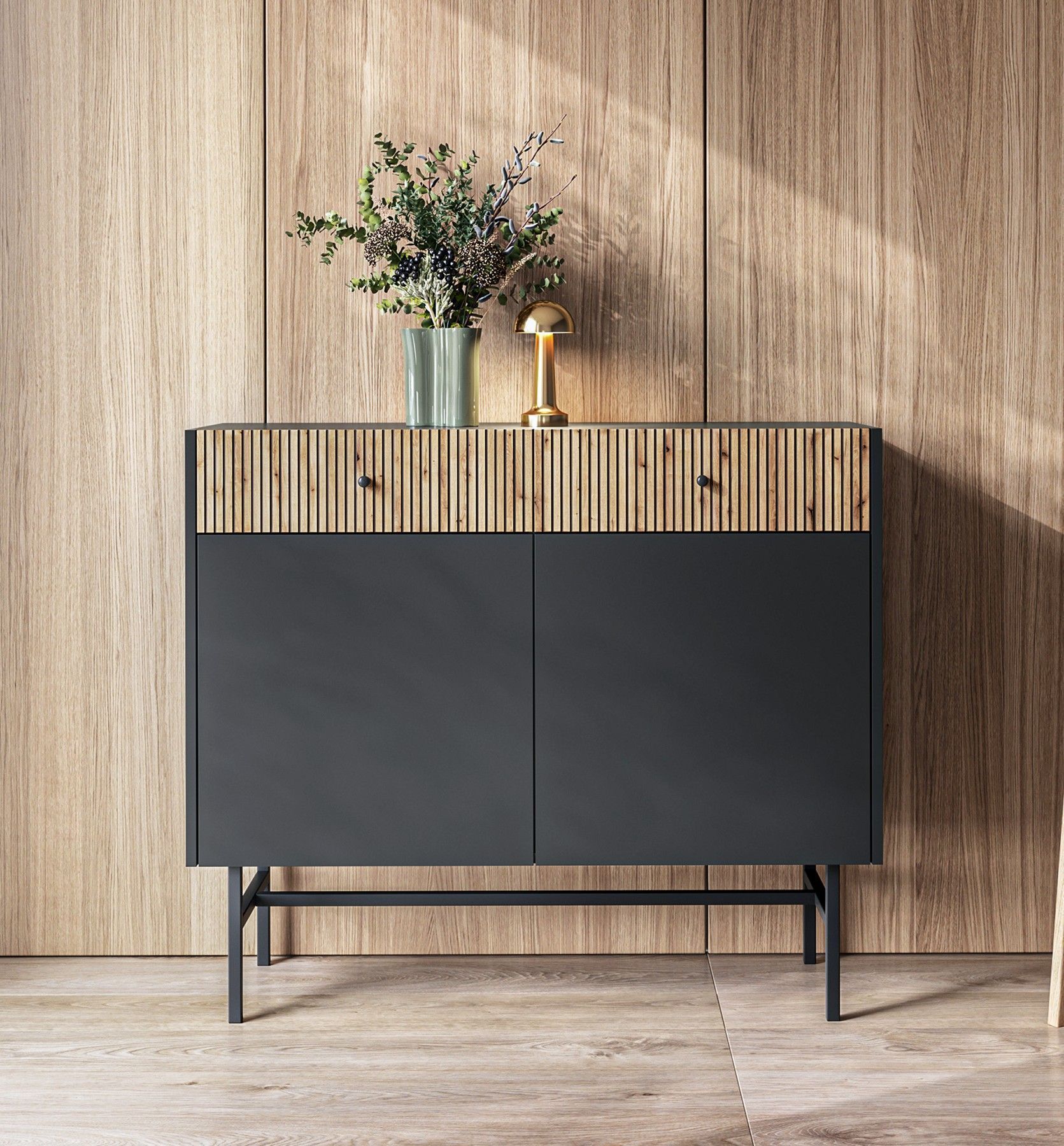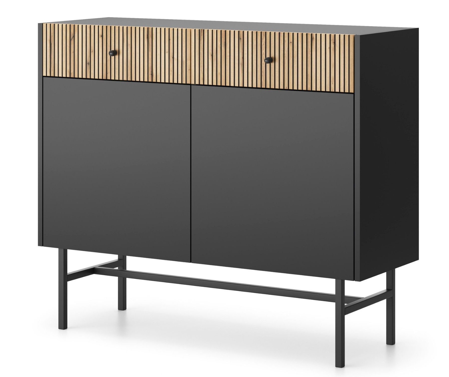 AX LIVING Kommode modern Dinley 104 cm Schwarz mit Eiche-Riffeloptik