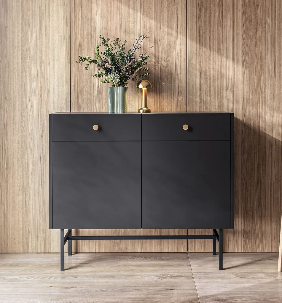 AX LIVING Kommode modern Dinley 155 cm Schwarz Matt mit Türen & Schubladen
