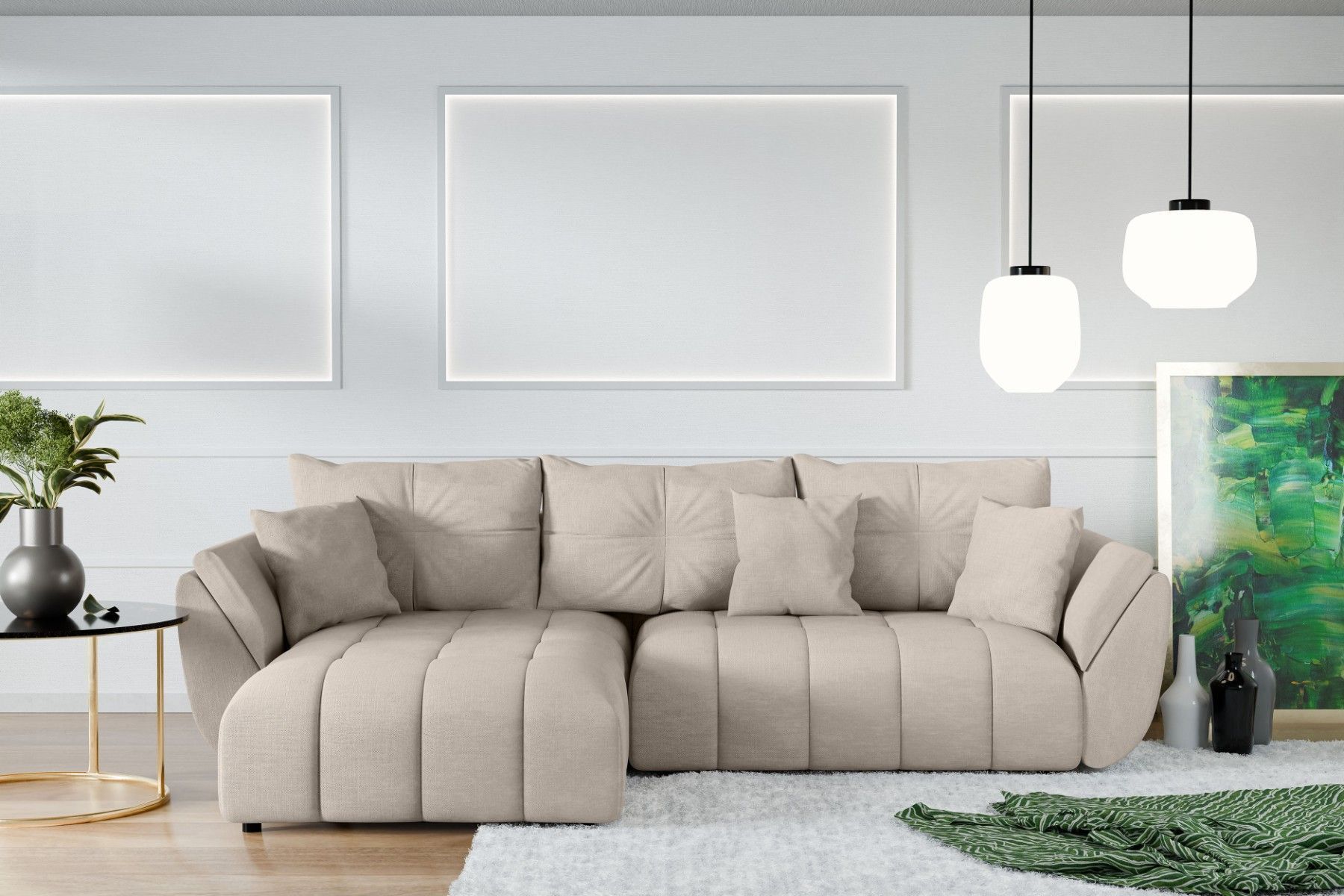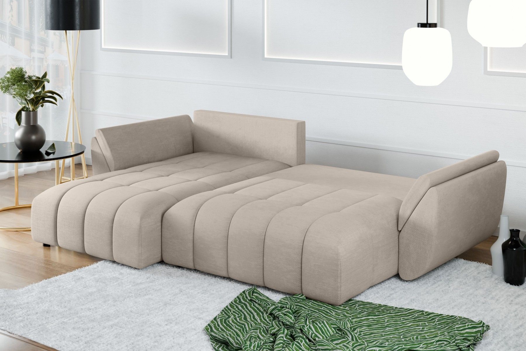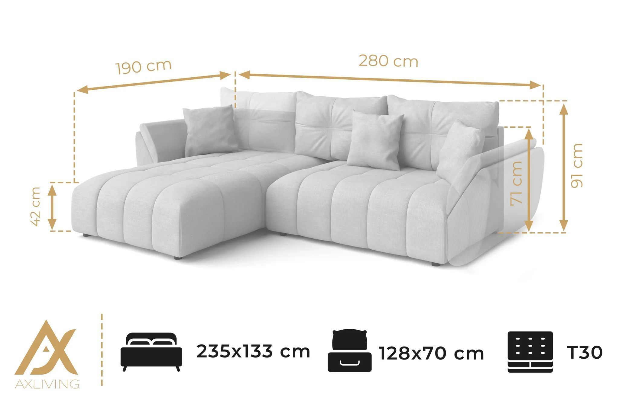 AX LIVING L Form hellbraune Ecksofa Verciani Schlaffunktion Bettkasten