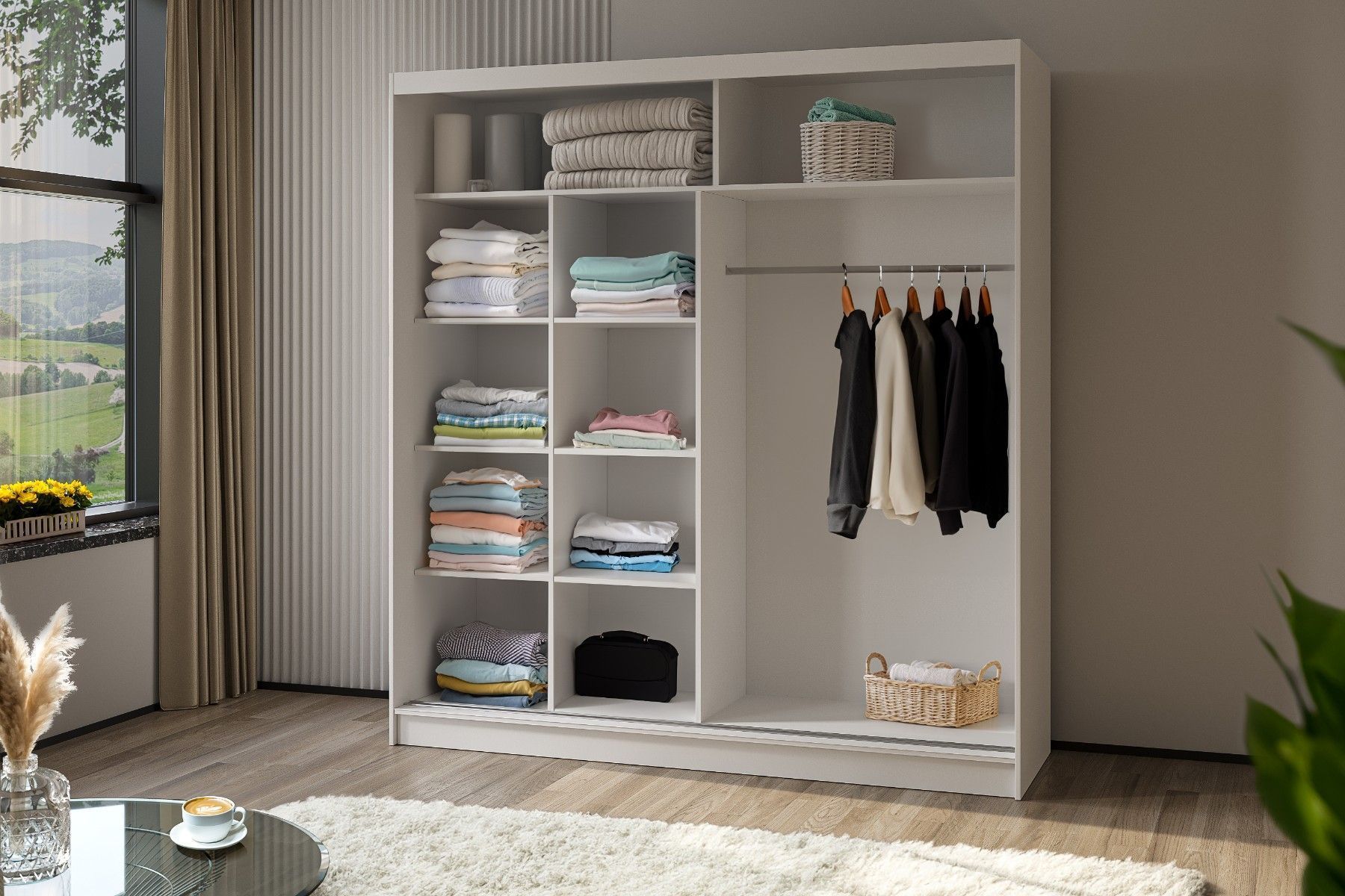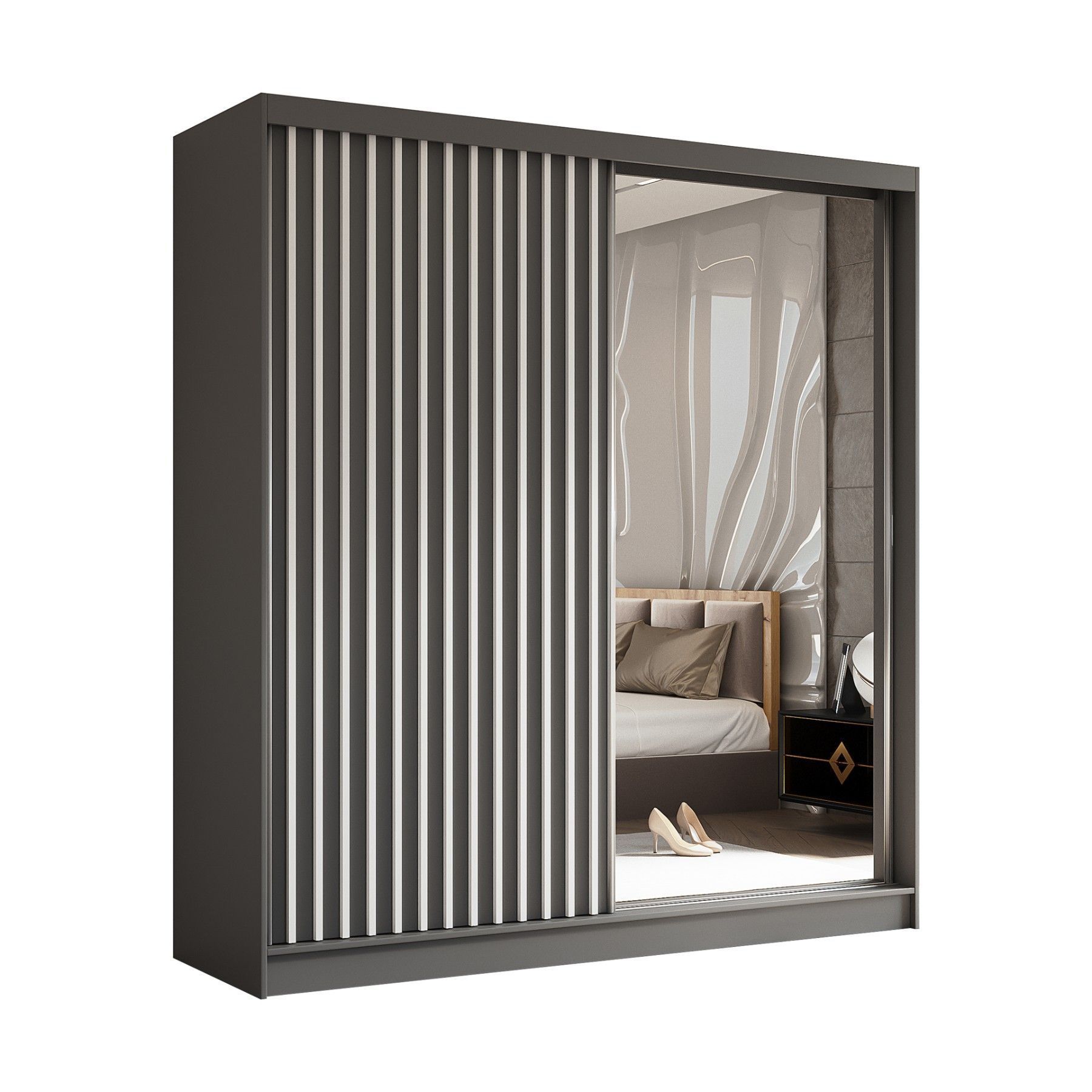 AX Living Lamellen Cabinio Kleiderschrank Grau mit Spiegel - 200 cm
