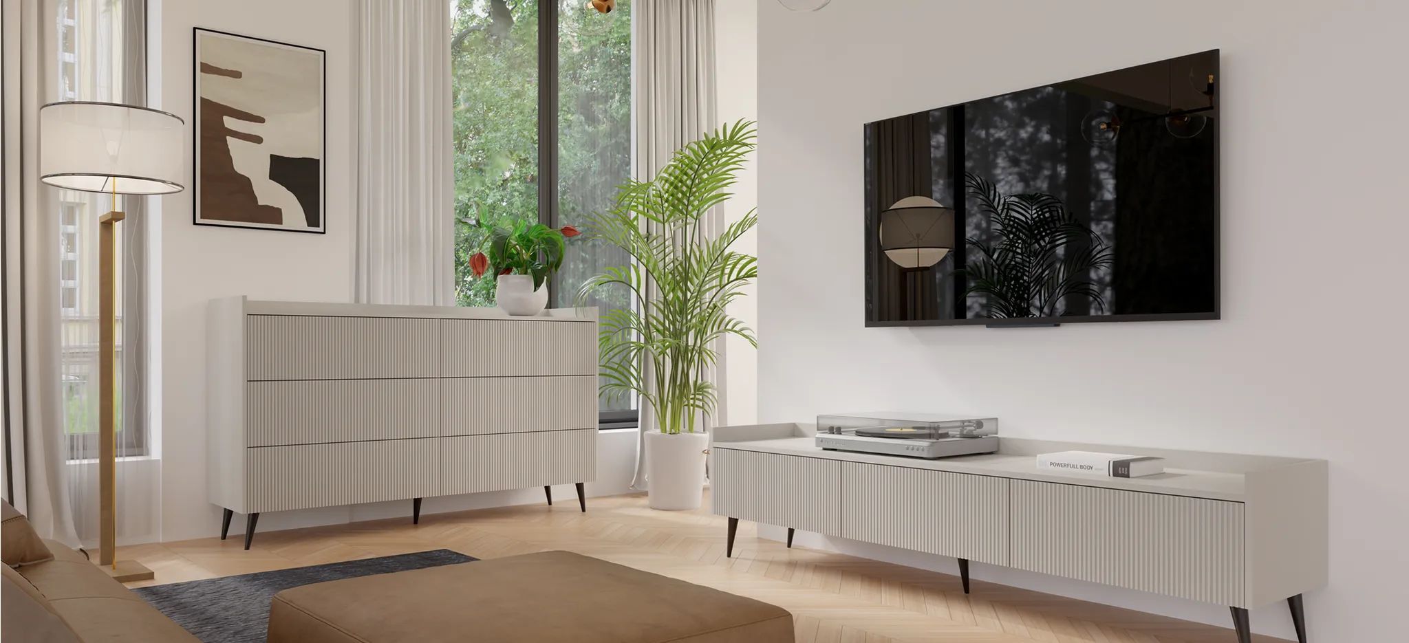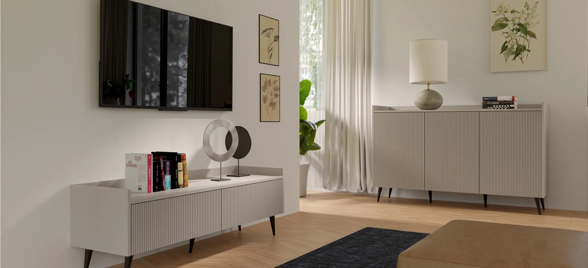 AX LIVING Lowboard TV Acaddo - 180 cm Breite, Modern in Kaschmir