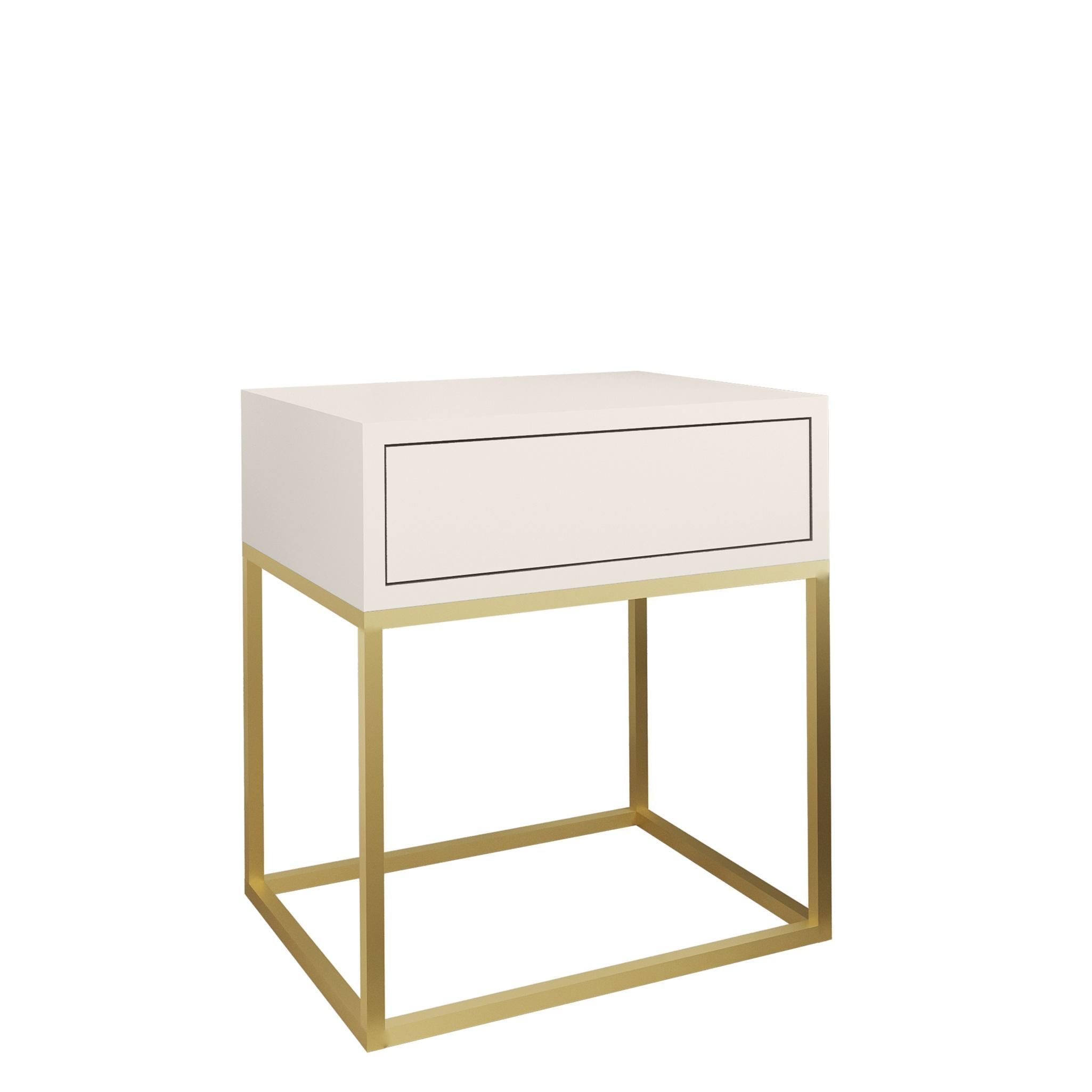 • AX LIVING Nachttisch mit Schublade Dinley 55 cm Beige matt auf Metallgestell