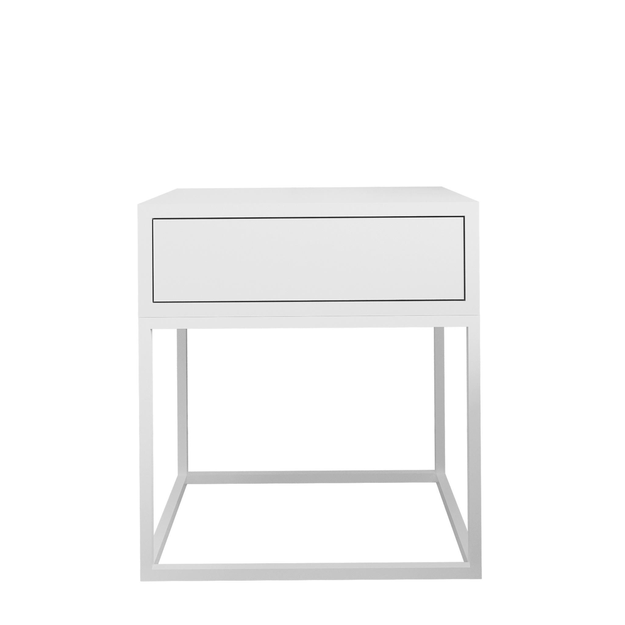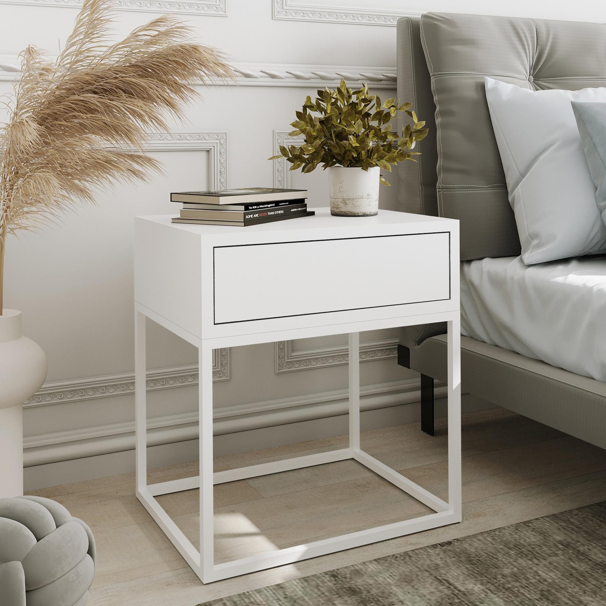 AX LIVING Nachttisch Kommode Aleio in Weiß mit weißem Metallgestell