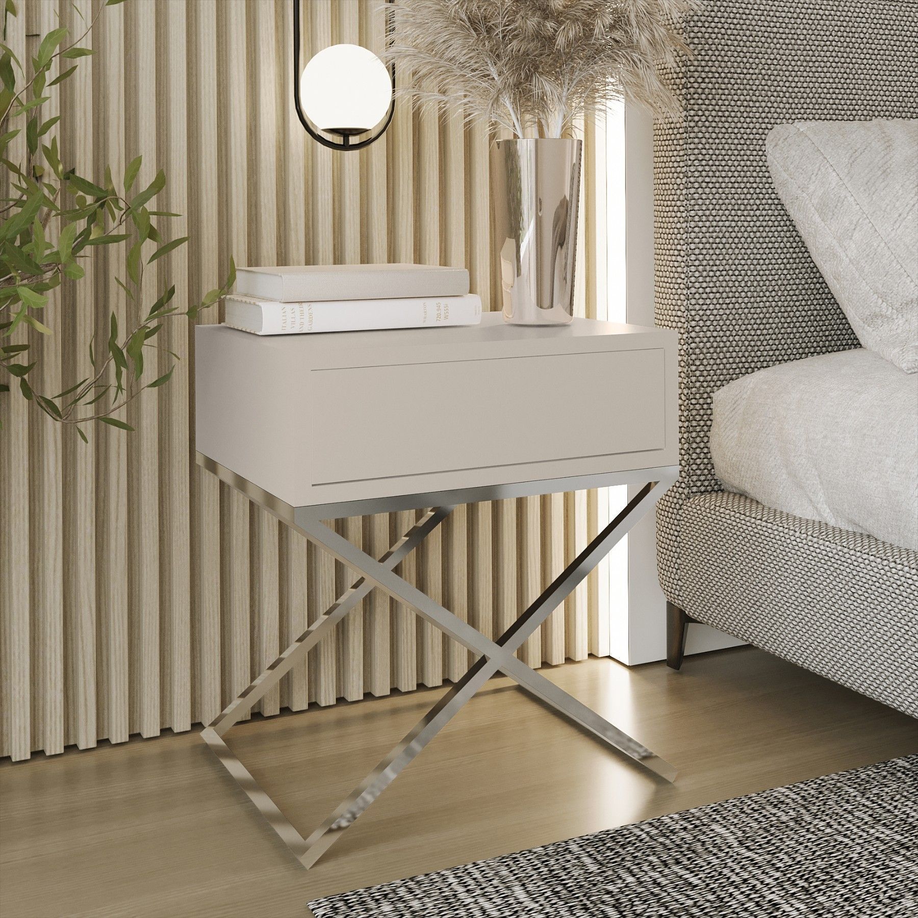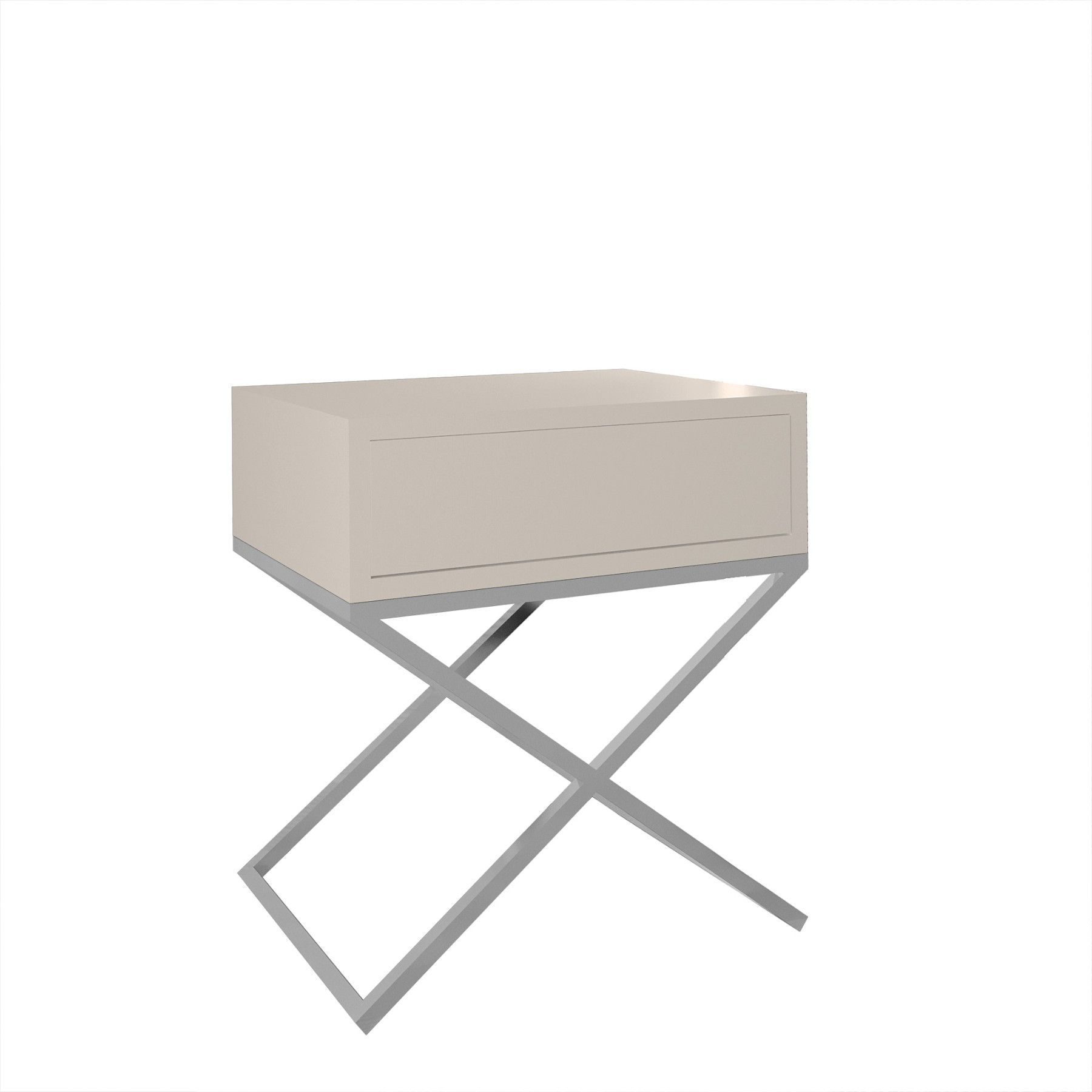 AX living Nachttisch modern Aleio X - 45cm breit, beige, Chromgestell