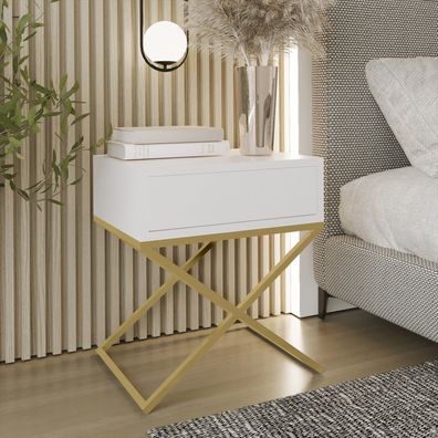 • AX living Nachttisch modern Aleio X - 45 cm breit, weiß, goldenes Gestell