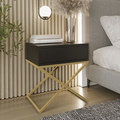 • AX living Nachttisch modern Aleio X - 45cm breit, schwarz, goldenes Gestell