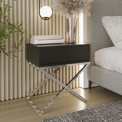 • AX LIVING Nachttisch modern Aleio X 45cm breit, schwarz, Chromgestell