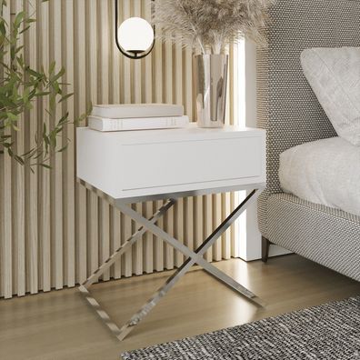 • AX living Nachttisch modern Aleio X - 45 cm breit, weiß, Chromgestell