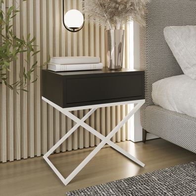 • AX living Nachttisch modern Aleio X - 45cm breit, schwarz, weißes Gestell