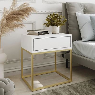 • AX LIVING Nachttisch Kommode Aleio Weiß, goldenes Metallgestell 45 cm