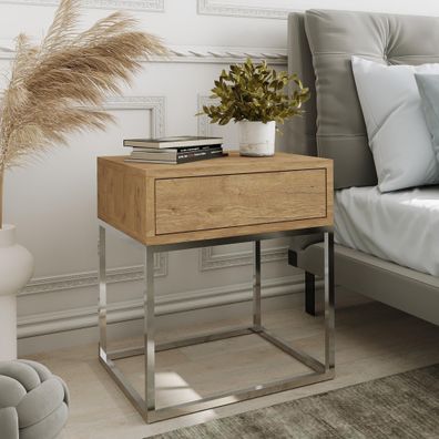 • X LIVING Nachttisch Kommode Aleio 45 cm Eiche Wotan, Chromgestell