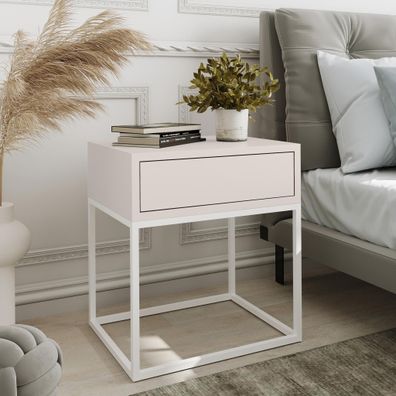 • AX LIVING Nachttisch Kommode Aleio in Beige mit weißem Metallgestell