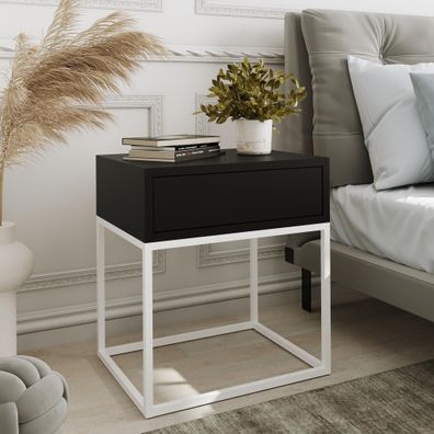 • AX LIVING Nachttisch Kommode Aleio in Schwarz mit weißem Metallgestell