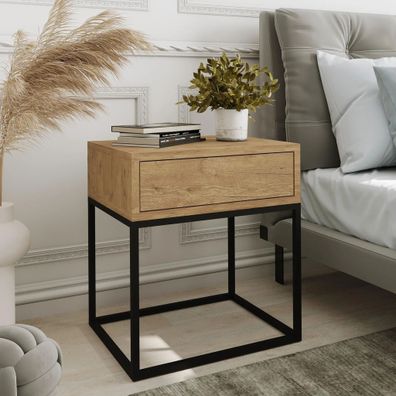 • AX LIVING Nachttisch Kommode Aleio 45 cm Eiche Wotan schwarzes Gestell