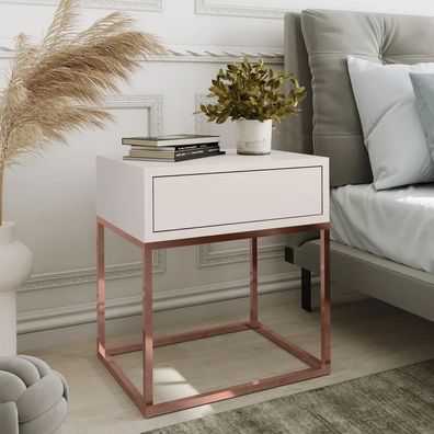 • AX LIVING Nachttisch Kommode Aleio Weiß kupferfarbenes Metallgestell