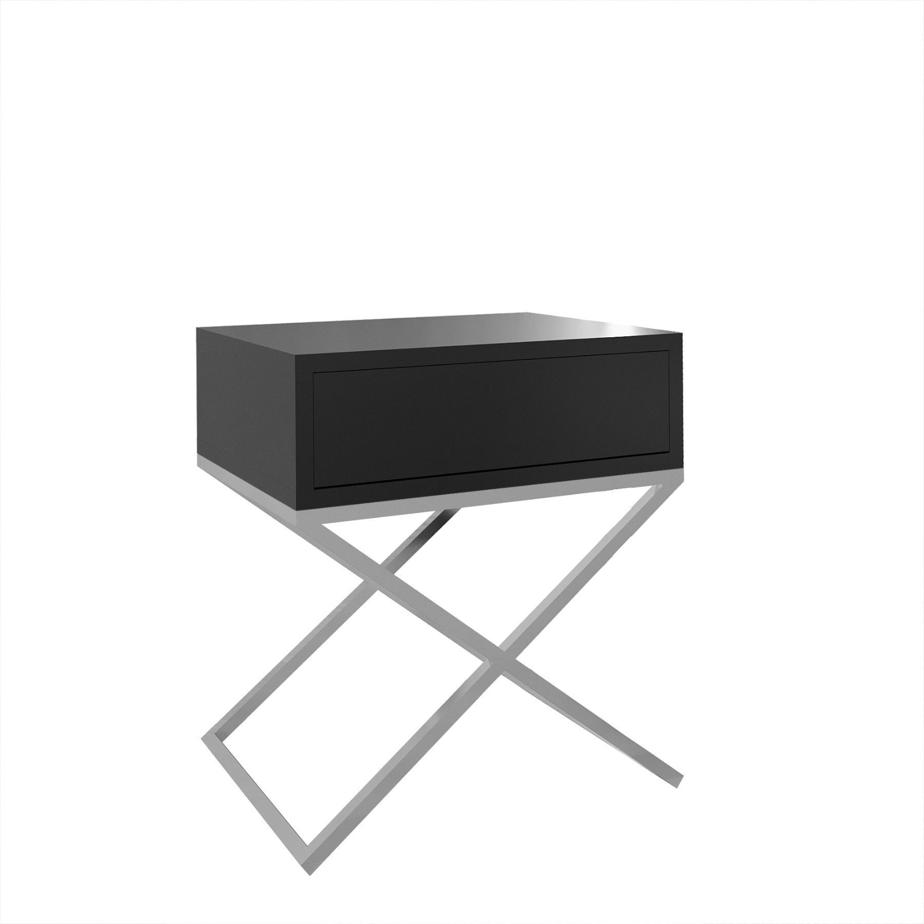AX LIVING Nachttisch modern Aleio X 45cm breit, schwarz, Chromgestell