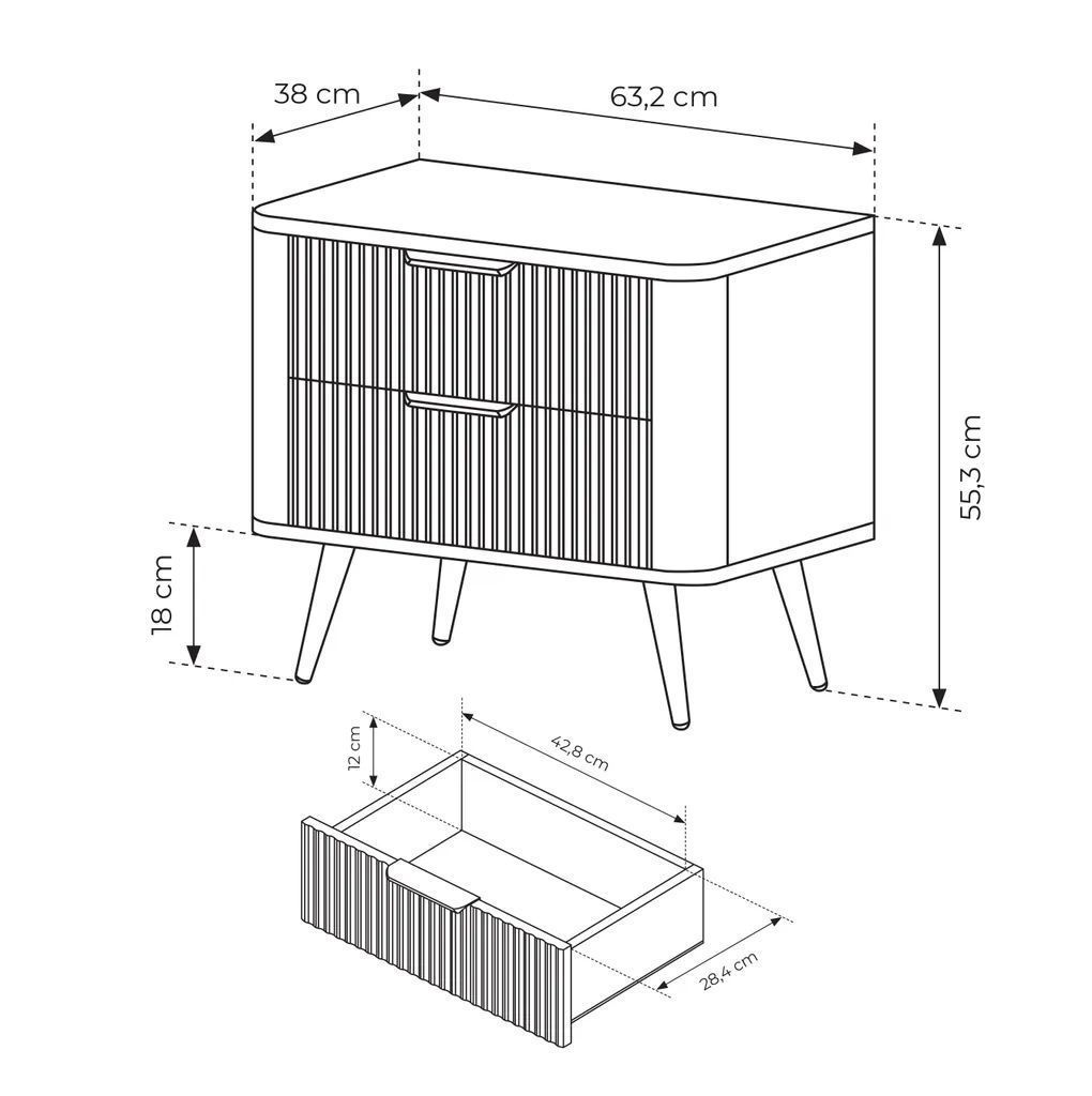 AX LIVING Nachttisch schwarz modern Vespasia 63,2 x 55,3 x 38 cm