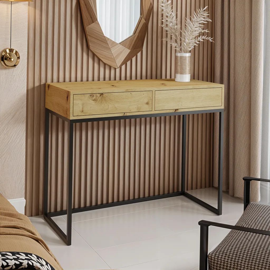 AX LIVING Schminktisch Lortie 80 cm Wotan Eiche schwarzes Gestell