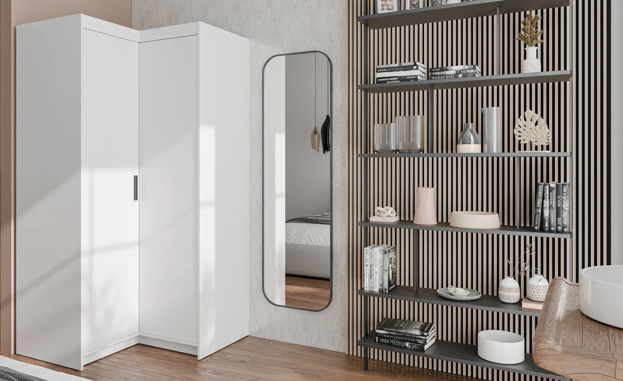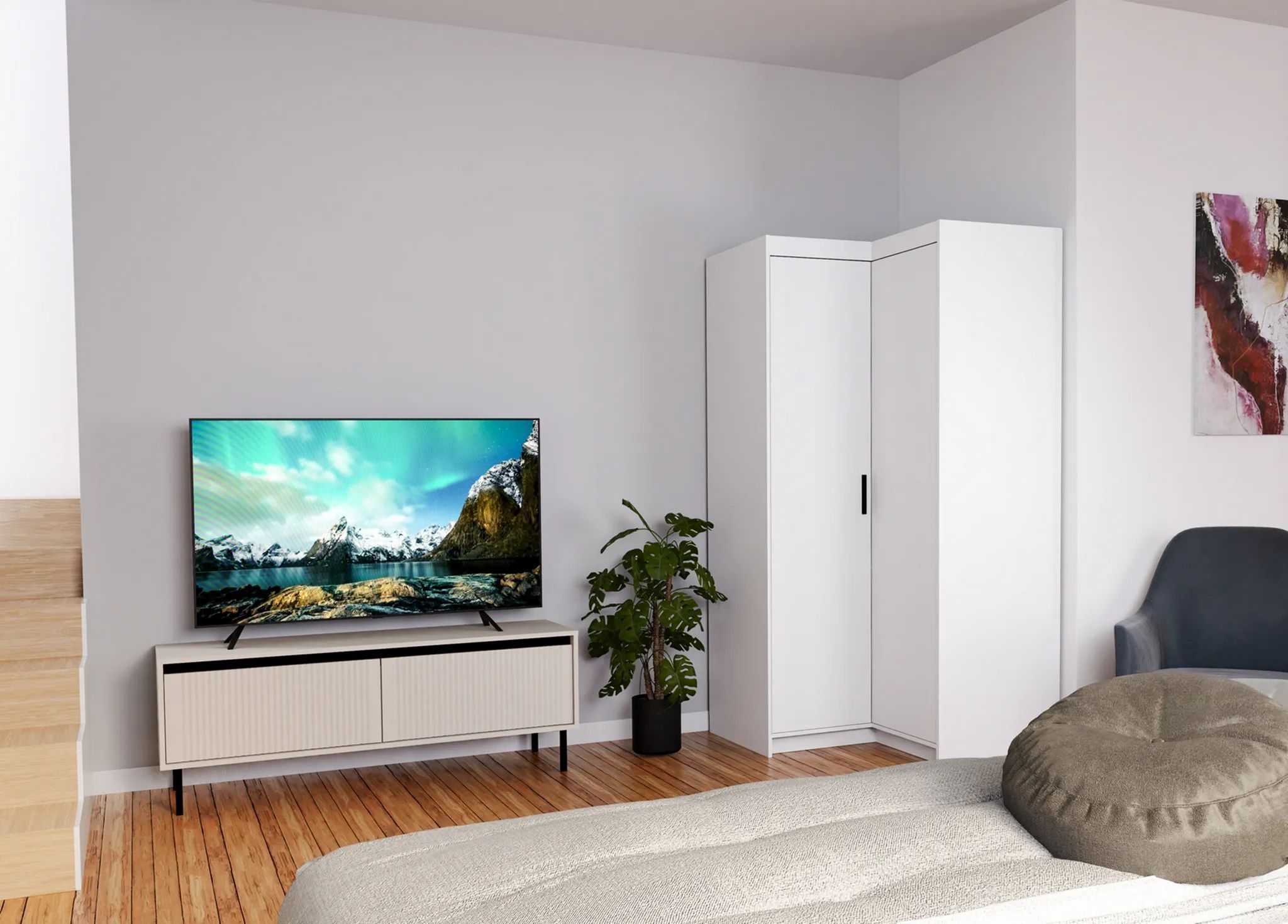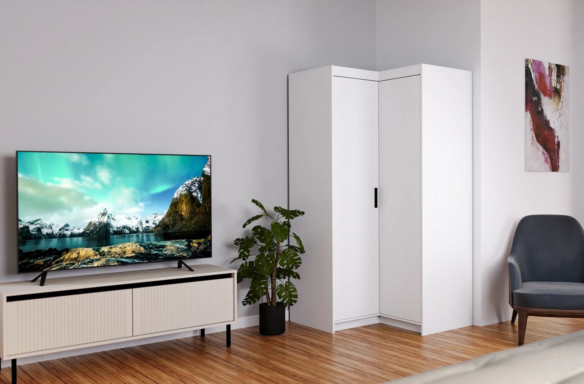 AX LIVING Schrank Modern Eckschrank weiß Storicos 97,8 x190,5 x97,8cm