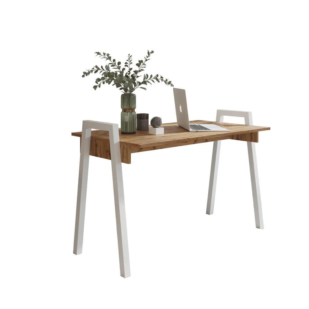 AX LIVING Schreibtisch 120 cm Loffie Eiche Weißes Metallgestell Modern