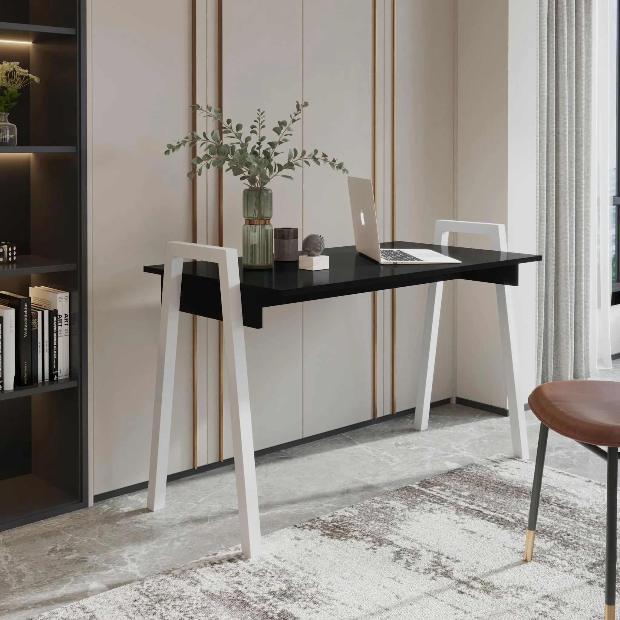 AX LIVING Schreibtisch 120 Loffie Schwarz Weißes Metallgestell Modern