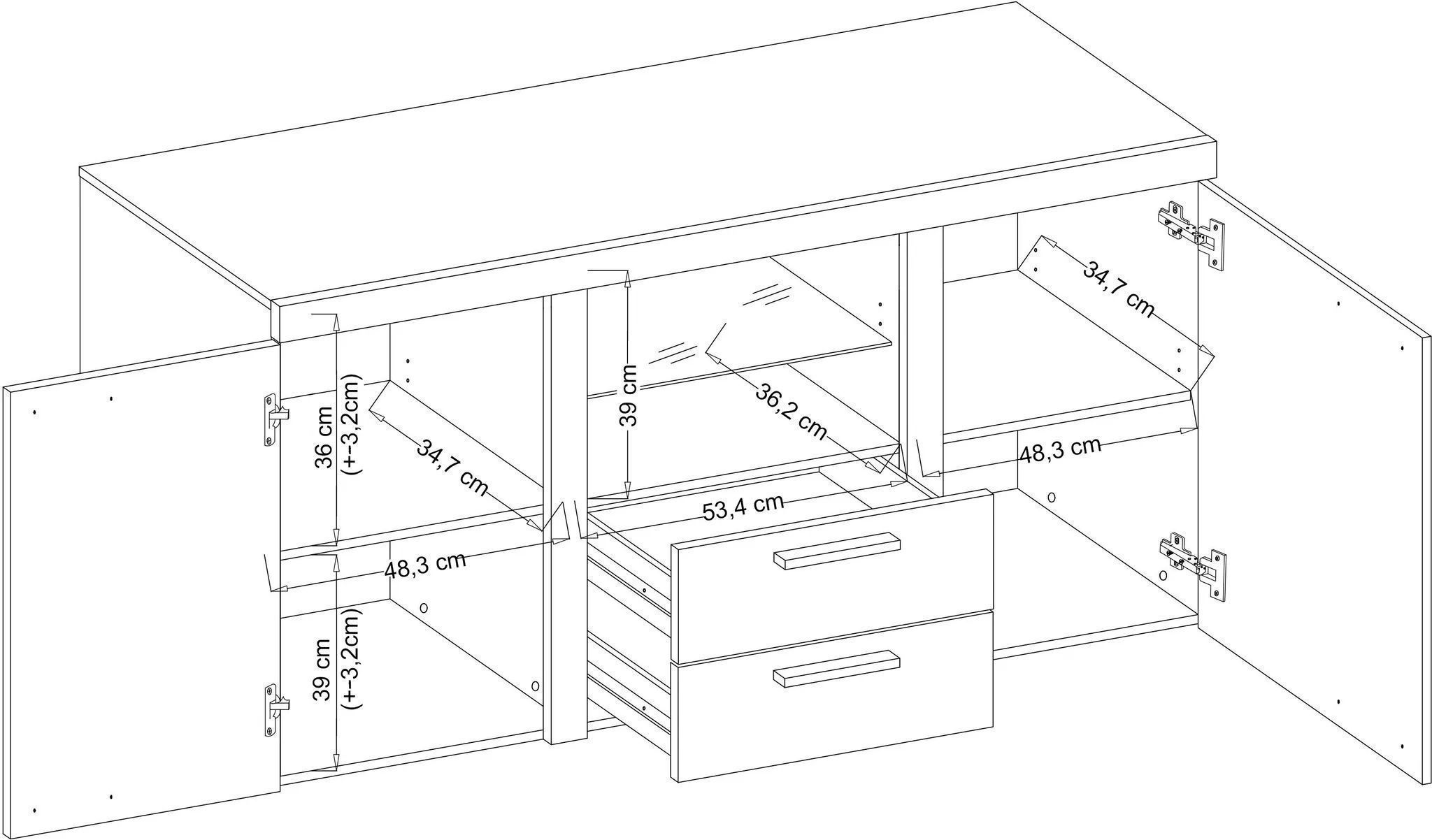AX LIVING Schubladenschrank Kommode Spacoro 2F2S Modern Eiche Sonoma