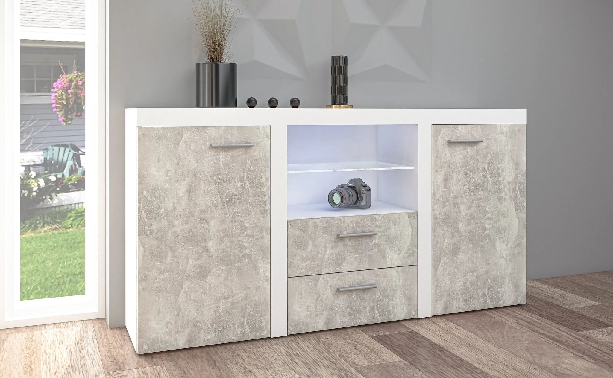 AX LIVING Schubladenschrank Kommode Spacoro 2T2S Modern in Weiß/Beton