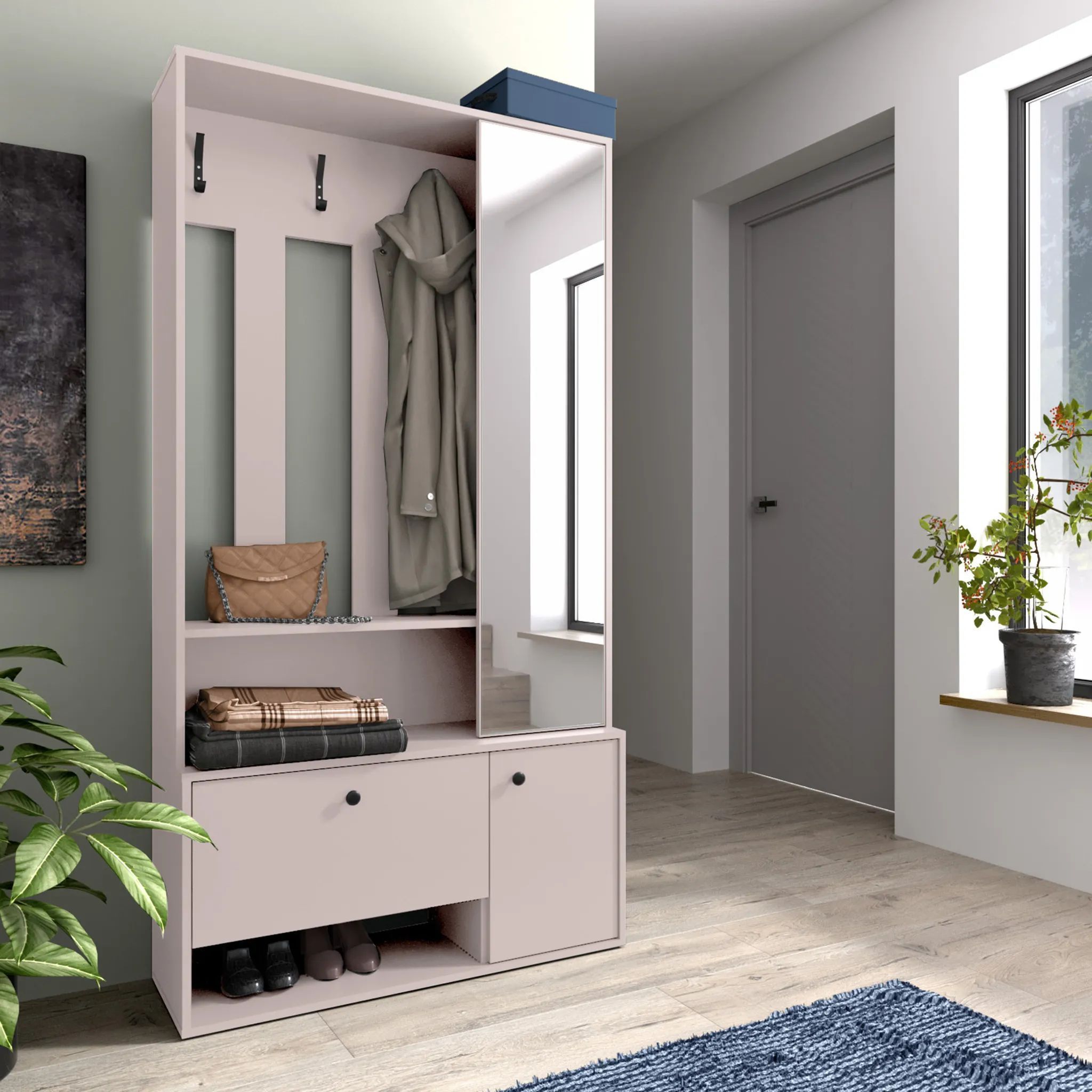 AX LIVING Schuhschrank mit Garderobe Tokessa 100cm Breite mit Spiegel, Kaschmir