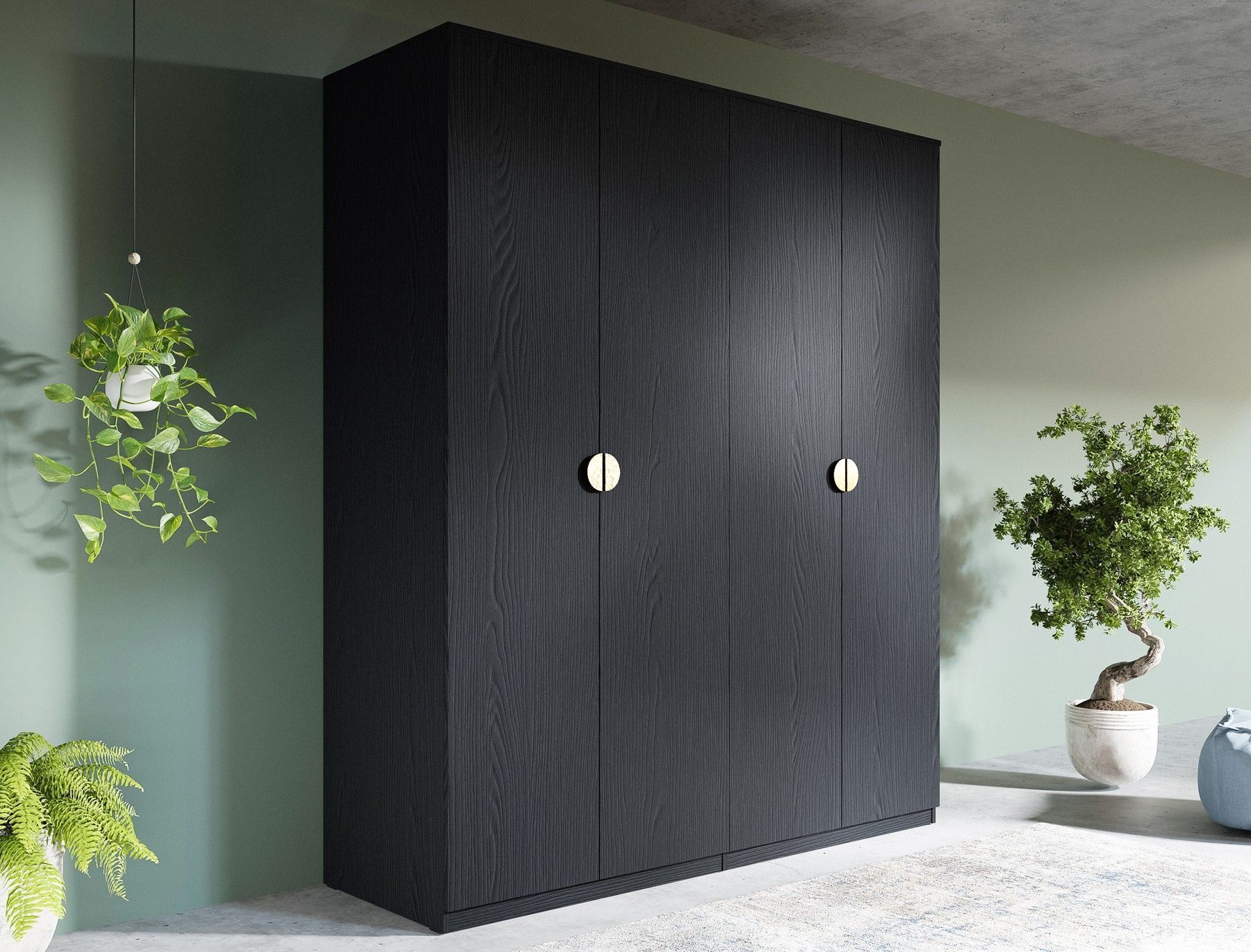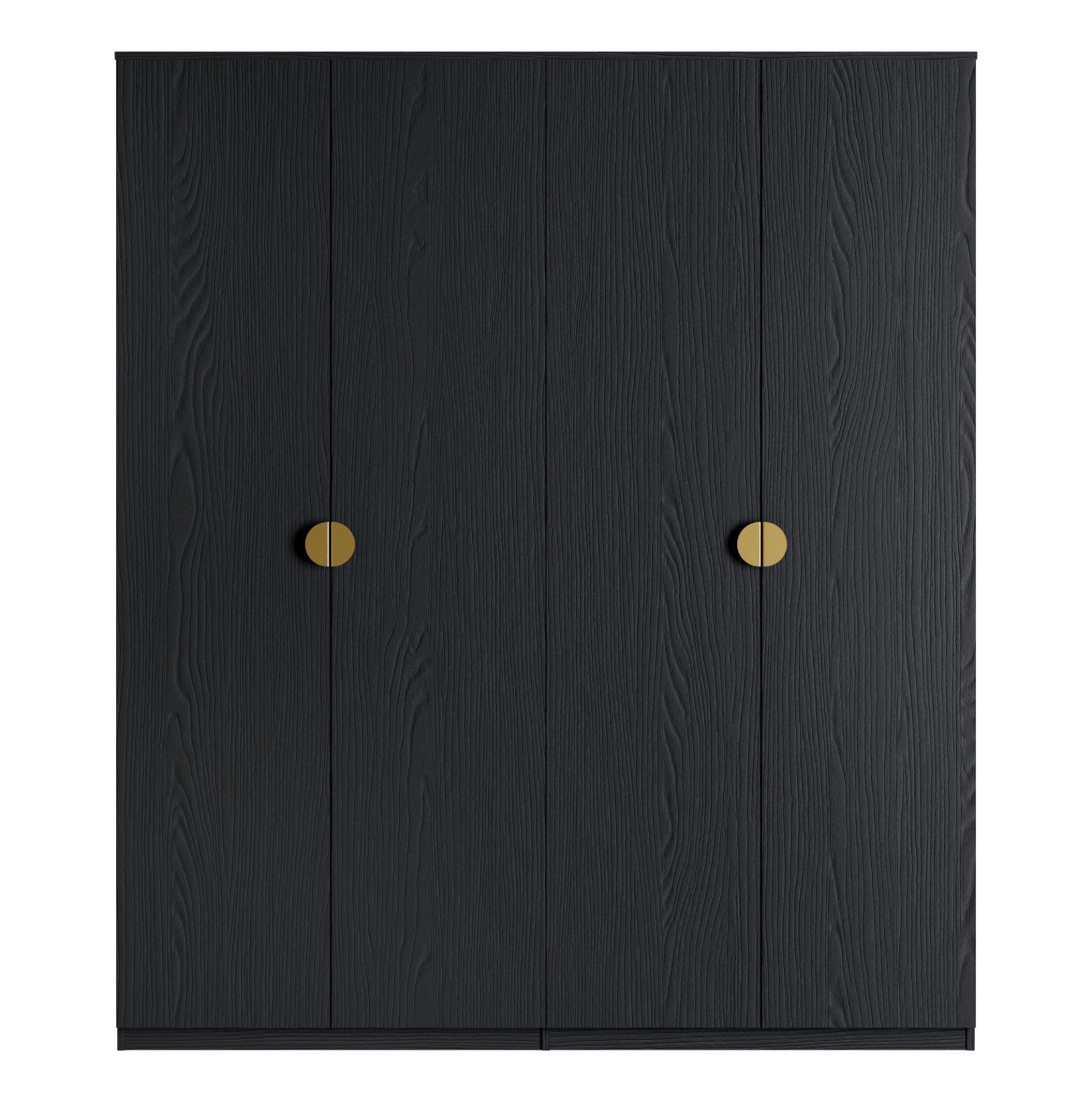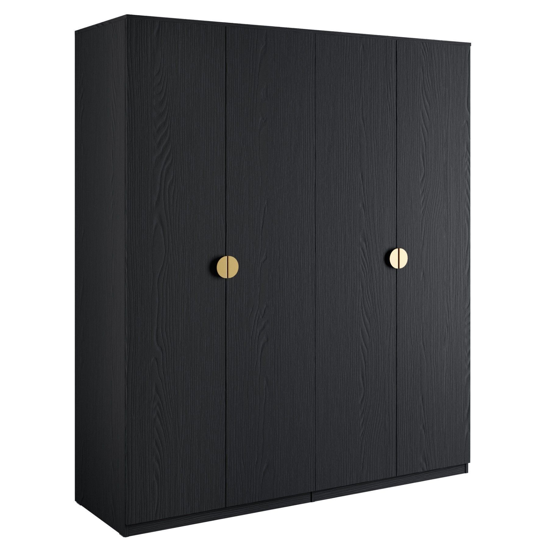 AX LIVING Schwarz Kleiderschrank Brunelli 179 cm 4-türig Gold Griffe