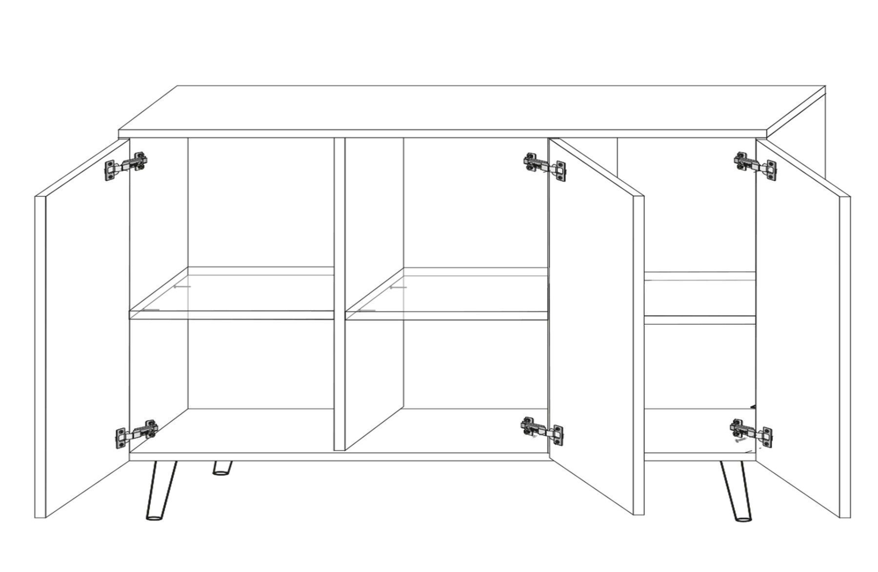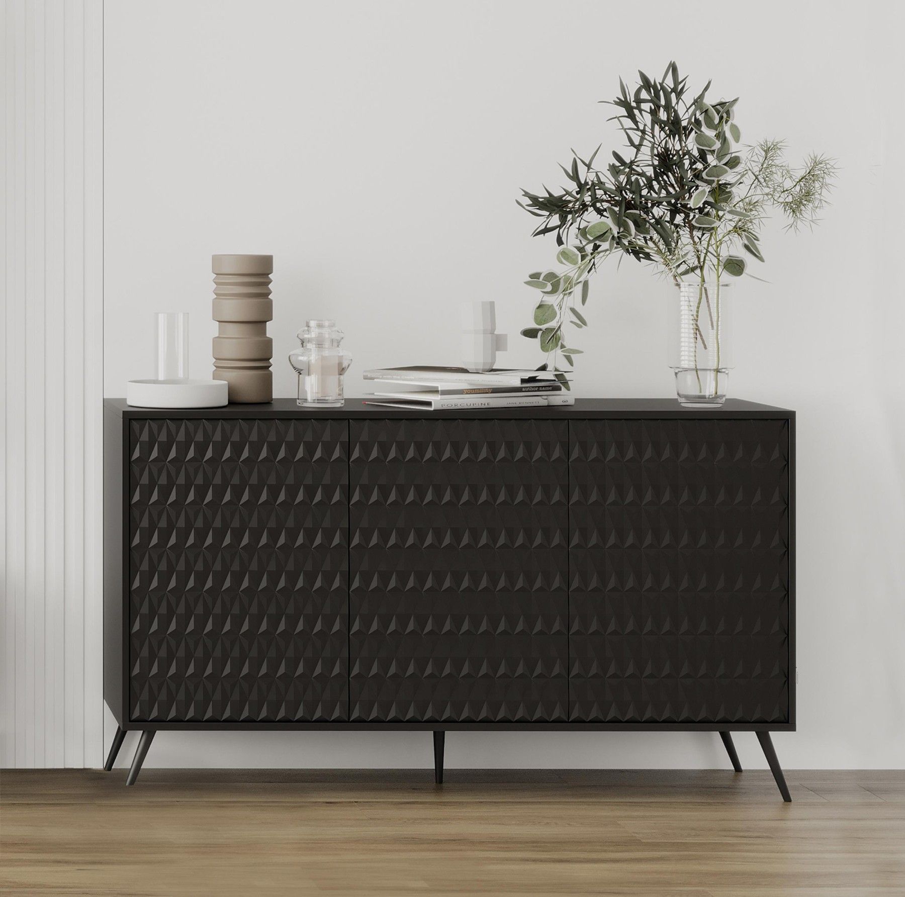 AX LIVING Schwarze Sideboard Delvine 154 cm - strukturiertes Design