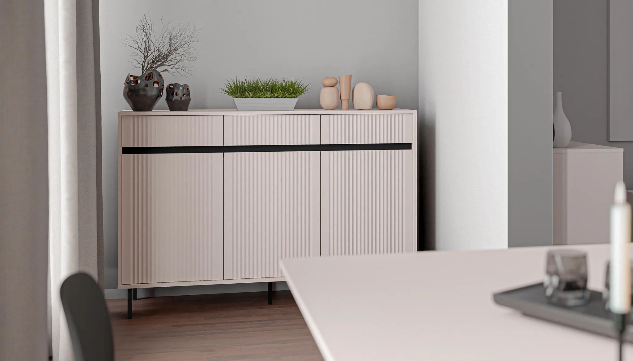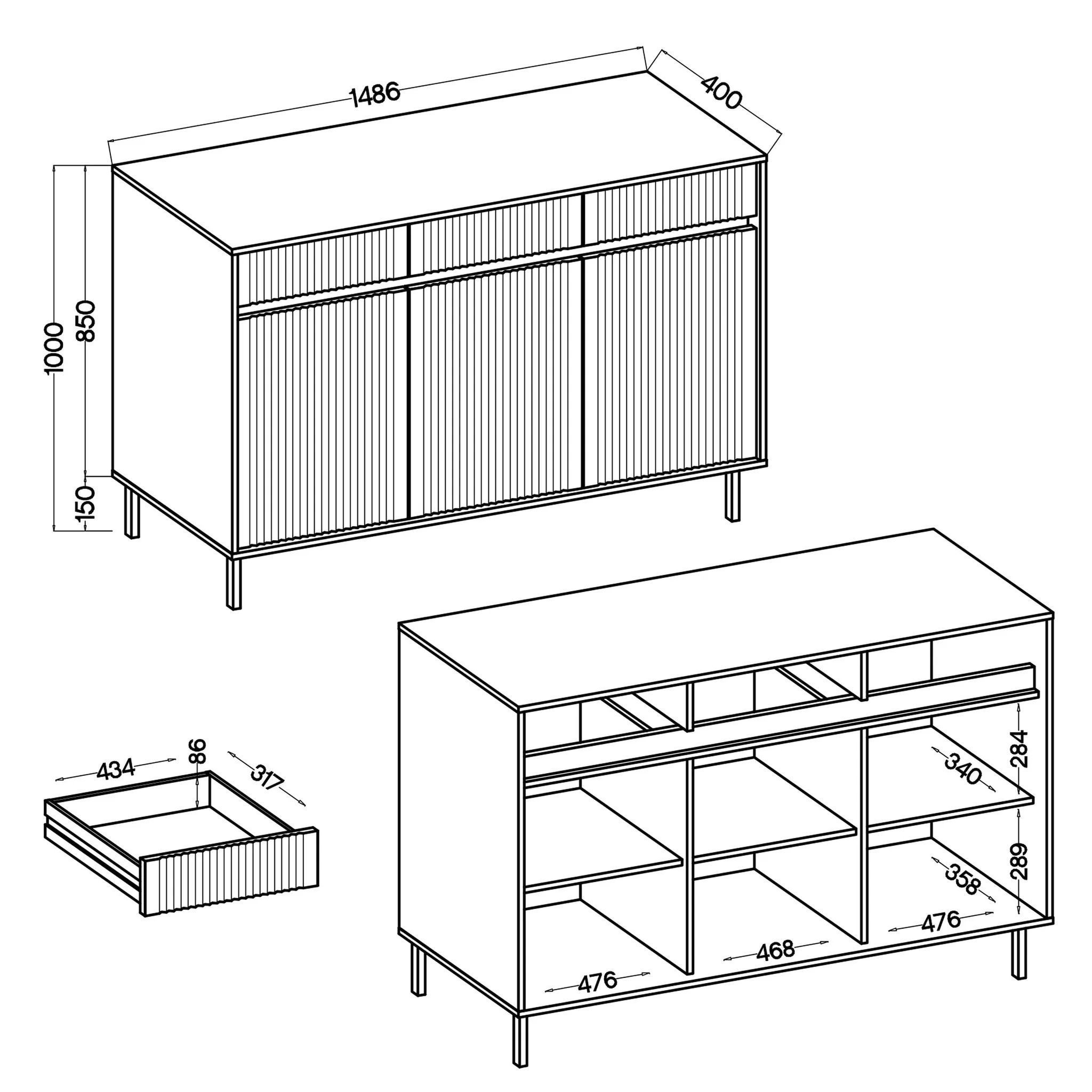 AX LIVING Sideboard Bodrum Kommode 3 Türen 3 Schubladen 149 cm Sandbeige
