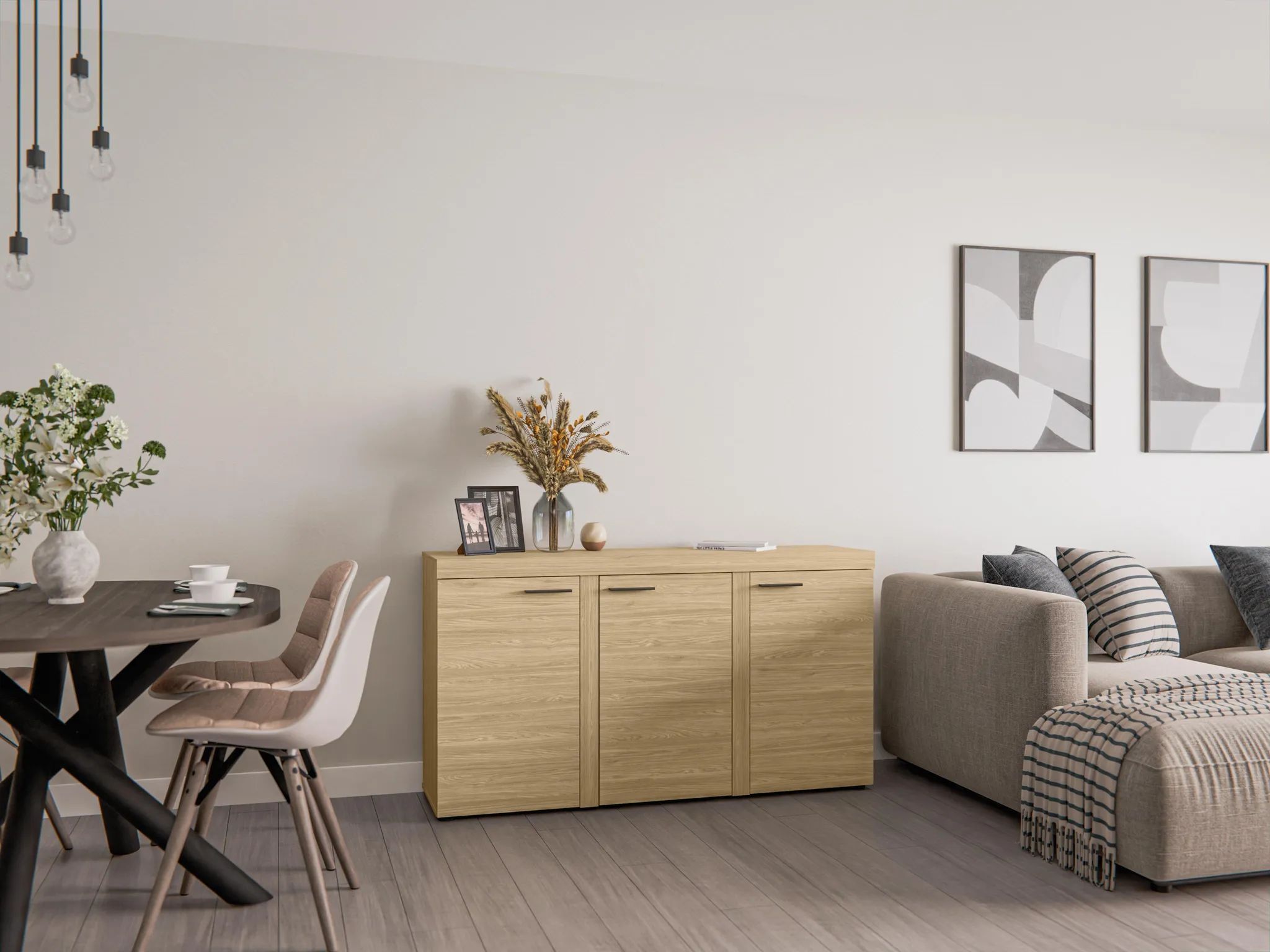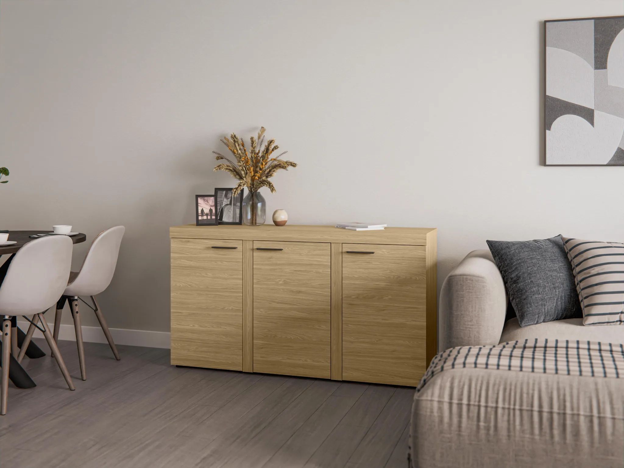 AX LIVING Sideboard Wohnzimmer Spacoro 3T - Modern in Geölte Eiche