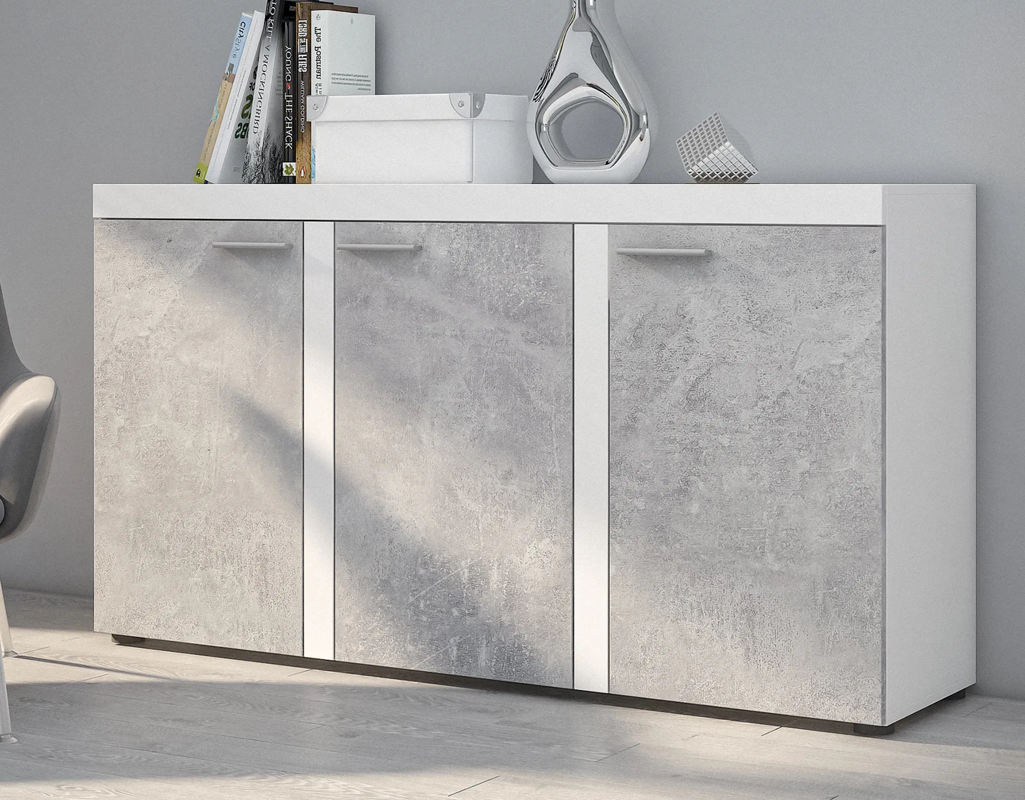 AX LIVING Sideboard Wohnzimmer Spacoro 3T - Modern in Weiß/Beton