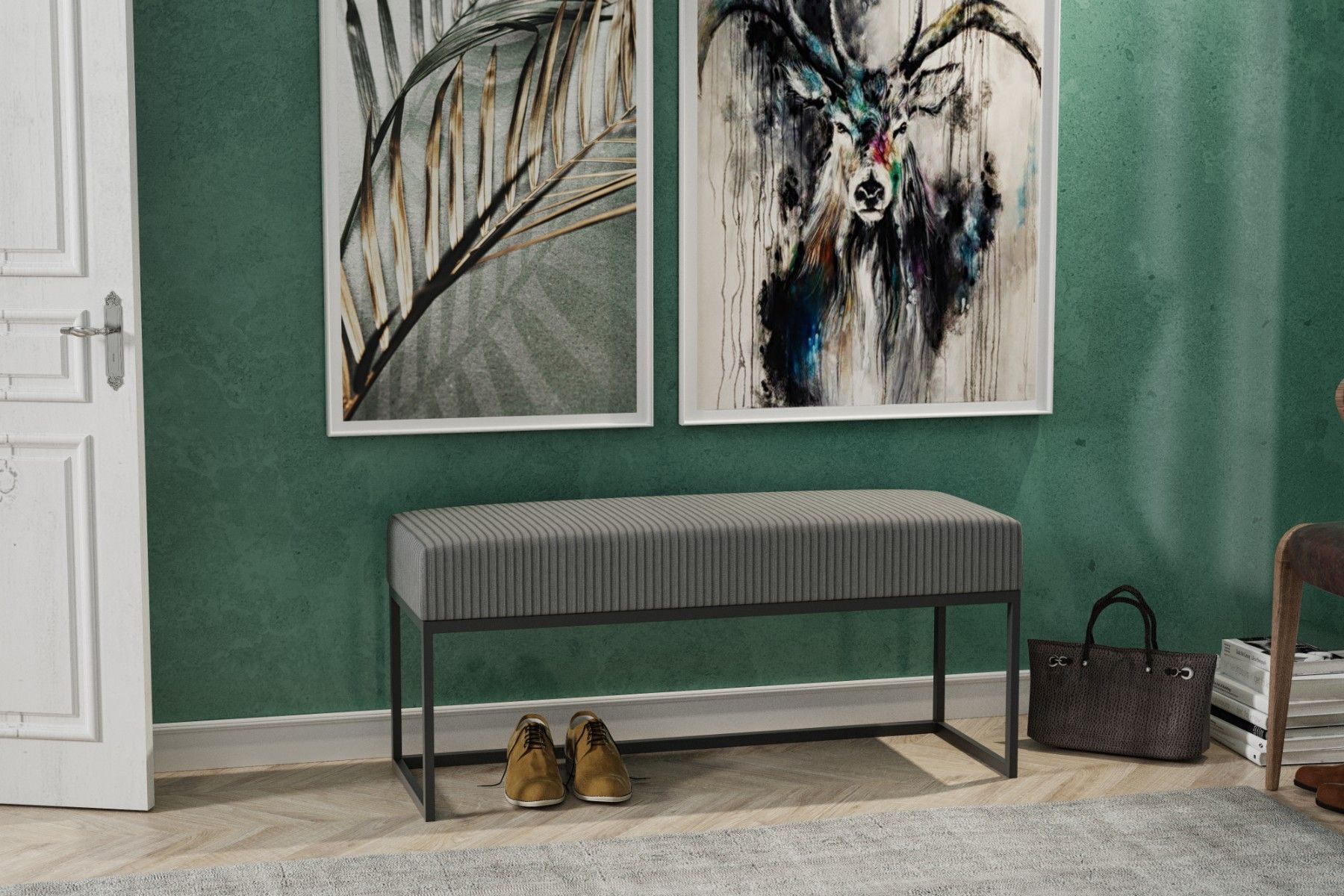 AX LIVING Sitz Bank Acciarolli 80 cm - Grau, schwarzes Metallgestell
