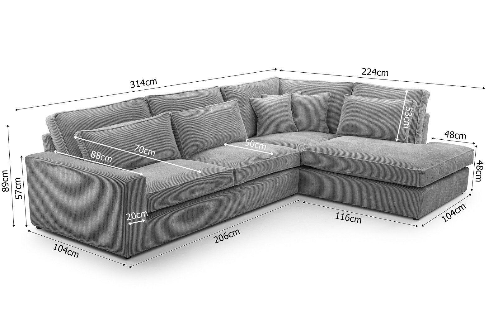 AX LIVING Sofa blau große Eckcouch Celleri XXL Couch L Form 314 cm R