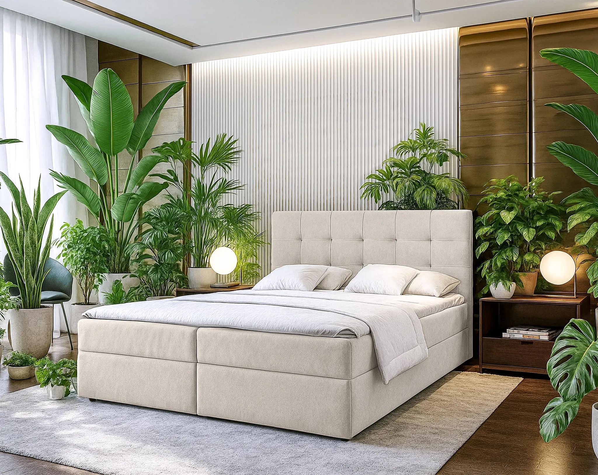 AX LIVING Stauraum Boxspringbett 140x200 cm Geceteni Doppel Bett Beige