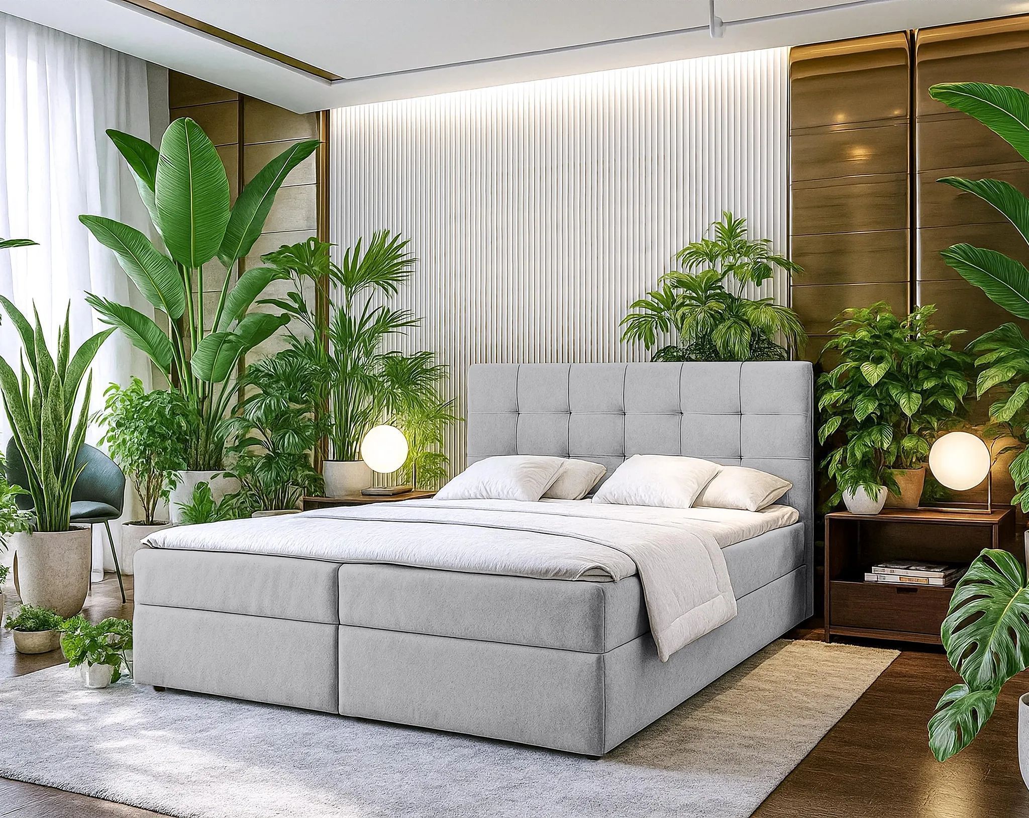 AX LIVING Stauraum Boxspringbett Grau 140x200 cm Geceteni Doppel Bett