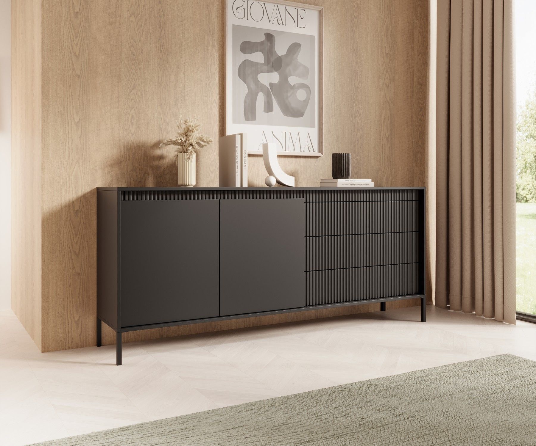 AX LIVING Trentinis 187 2D3S Schwarze große Kommode 187,1 cm breit