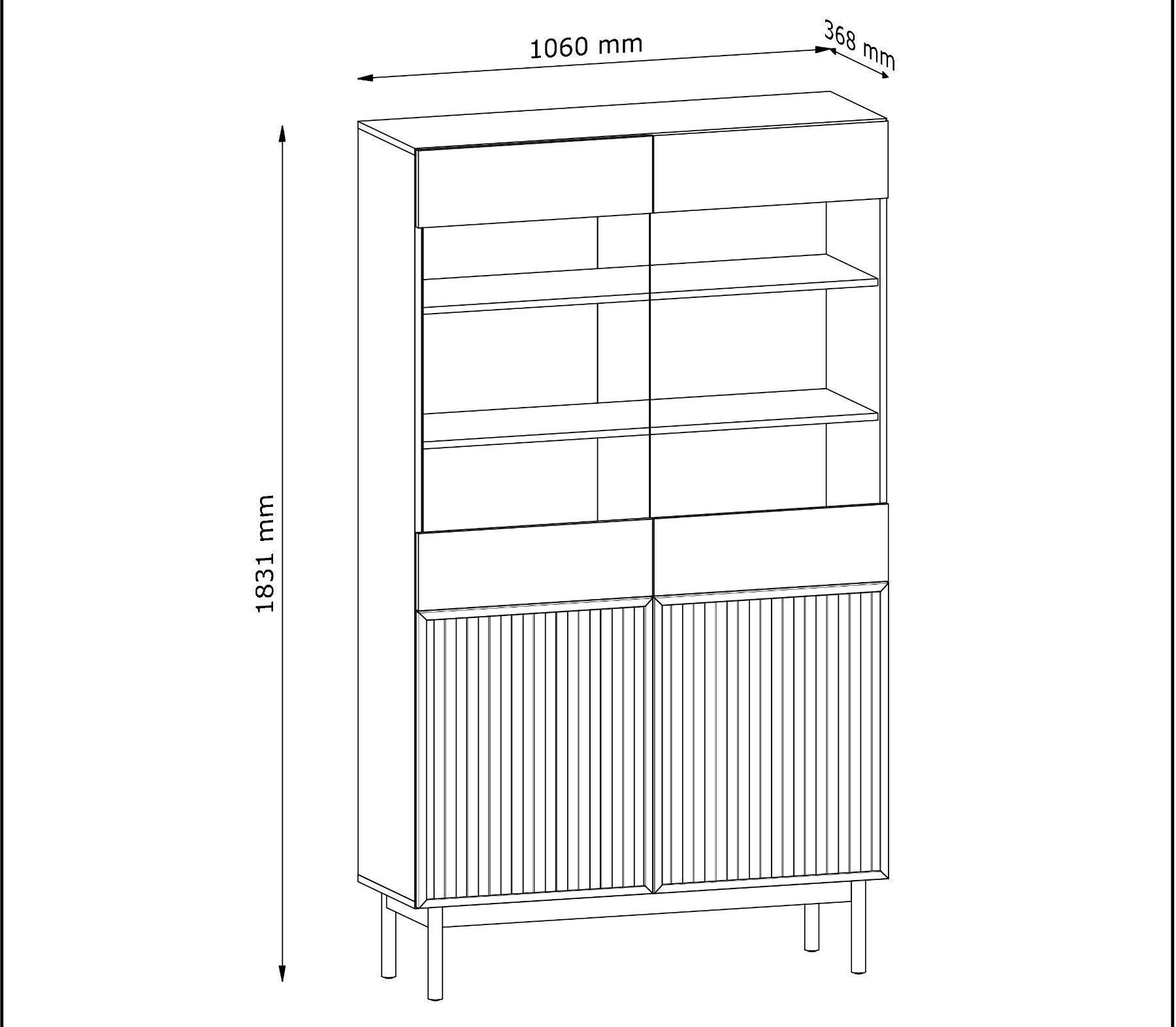 AX LIVING Vitrine Eiche Santarco W2T - 106 cm breit, Eiche Cremona