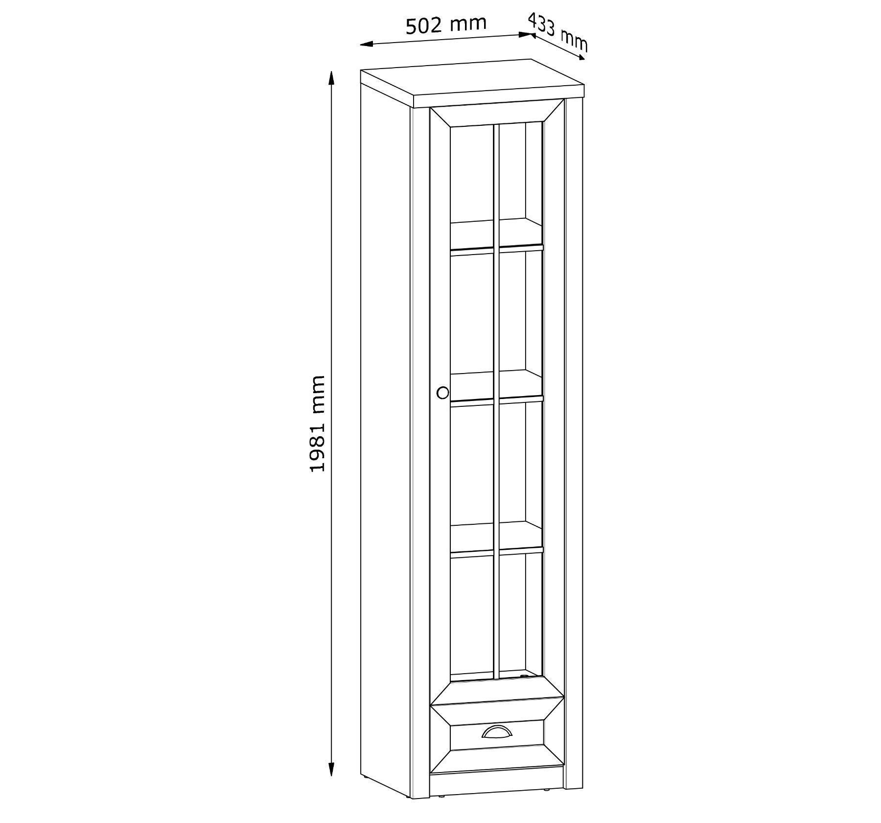 AX LIVING Vitrine Glas Palmano W1S - 50 cm breit, Andersen Kiefer