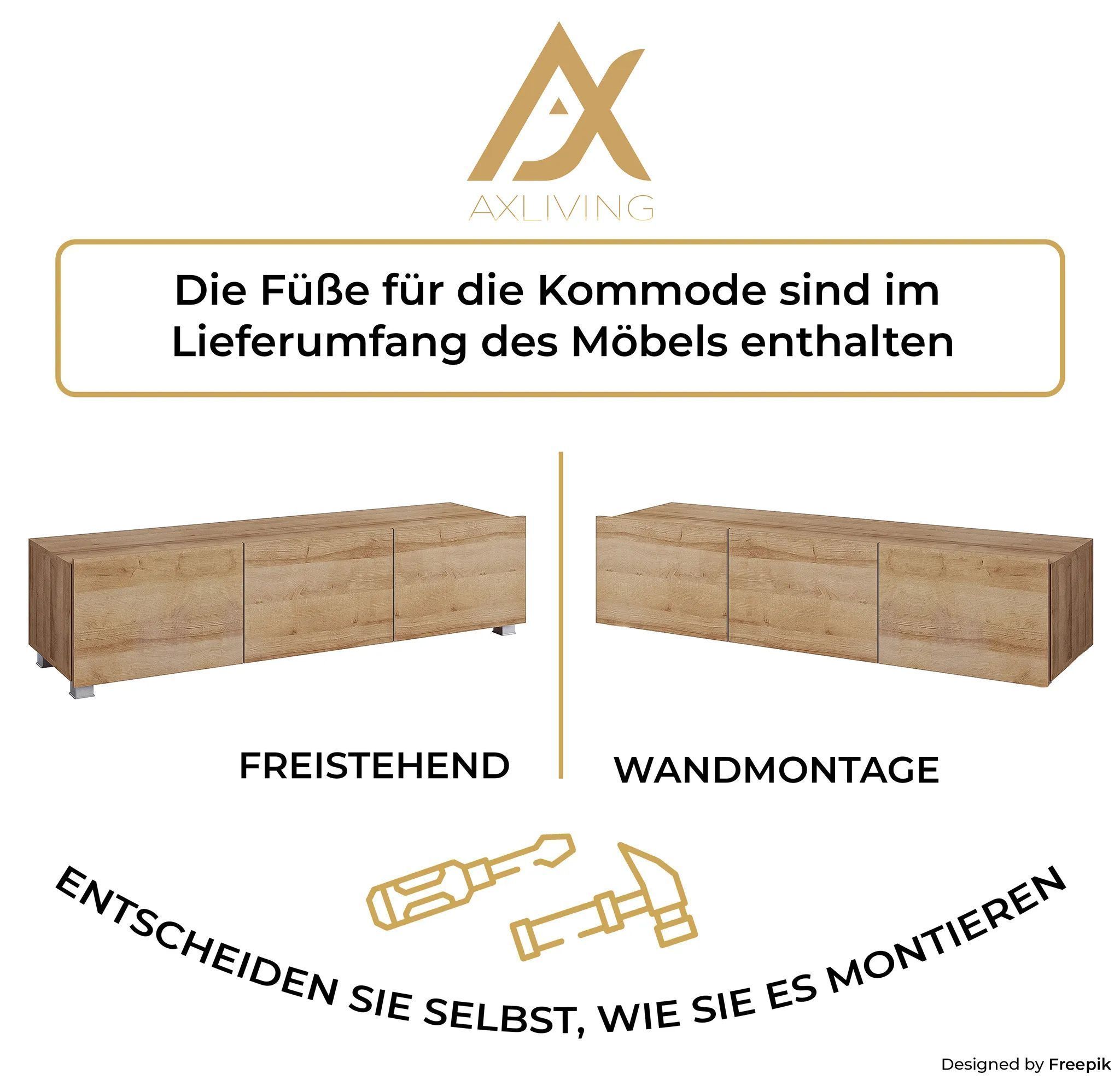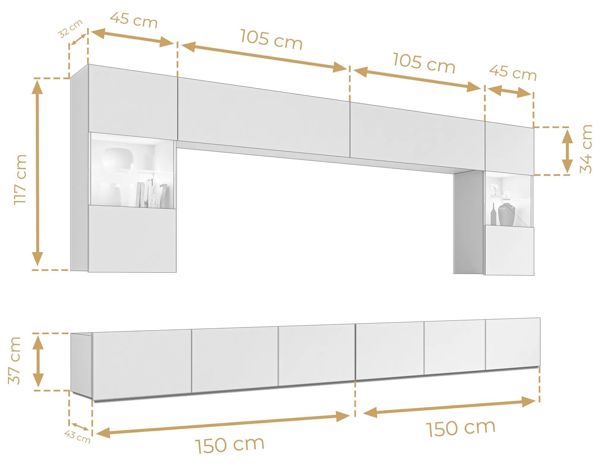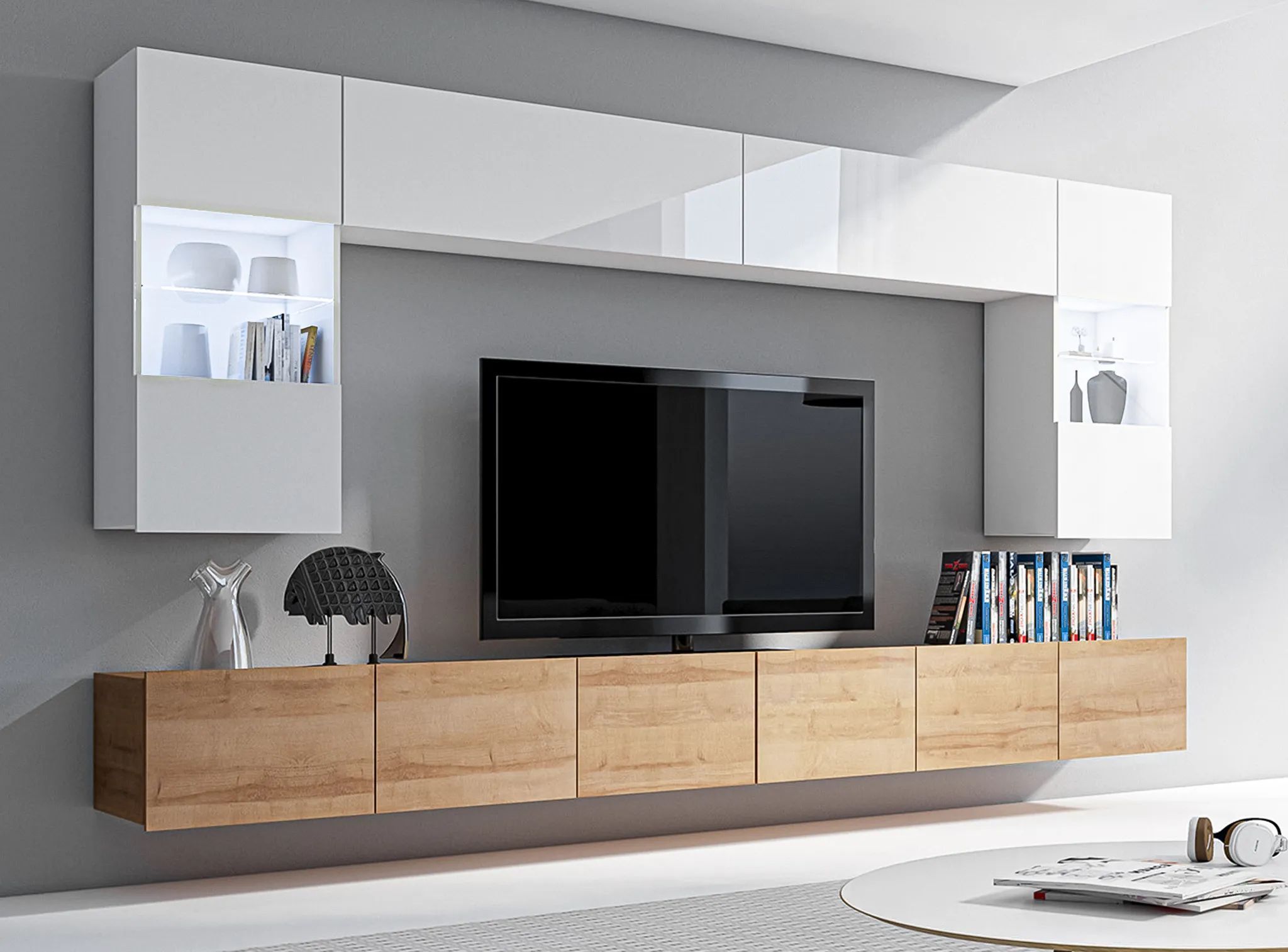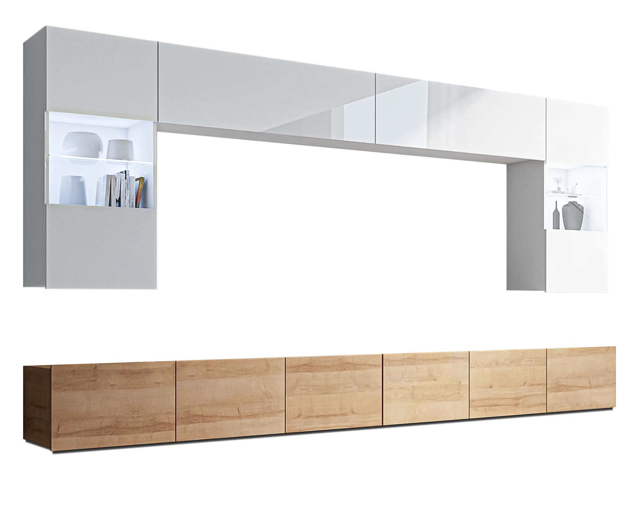 AX LIVING Wohnwand Modern Kossana 1 ? 300 cm Breite, Weiß/Goldene Eiche