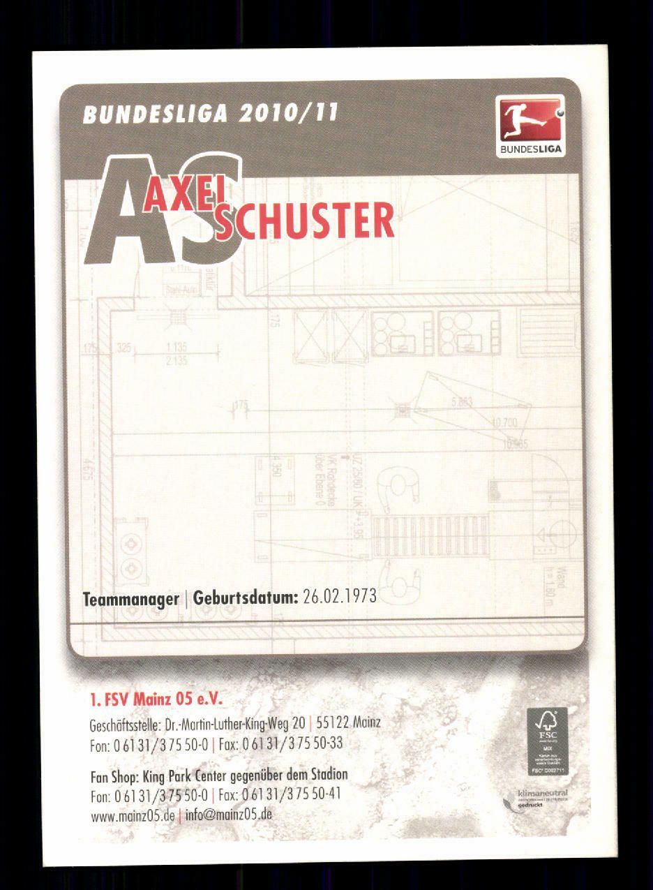 Axel Schuster Autogrammkarte FSV Mainz 05 2010-11 Original Signiert