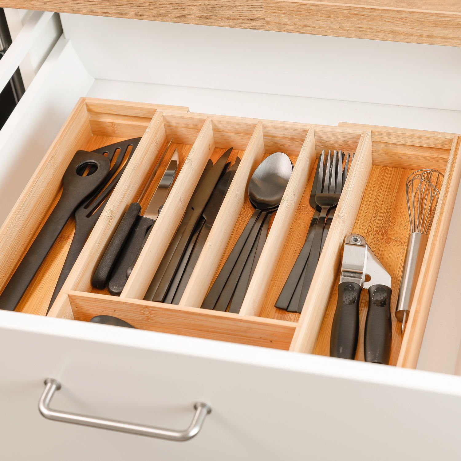 Axentia variabler Besteckkasten Bambus 5-7 Fächer Schubladeneinsatz für Besteck