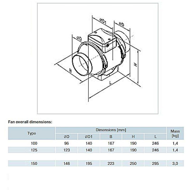 Axialer Rohrventilator, Ø 100mm, Abluft, zur Montage in Lüftungskanal