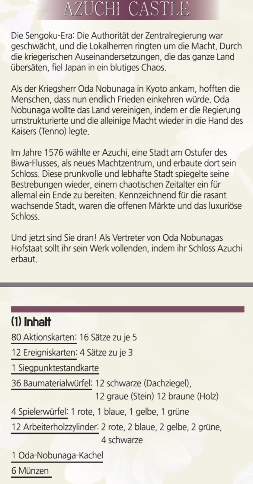 Azuchi Castle Baccum Verlag Gesellschatspiel Kartenspiel Familienspiel Englisch