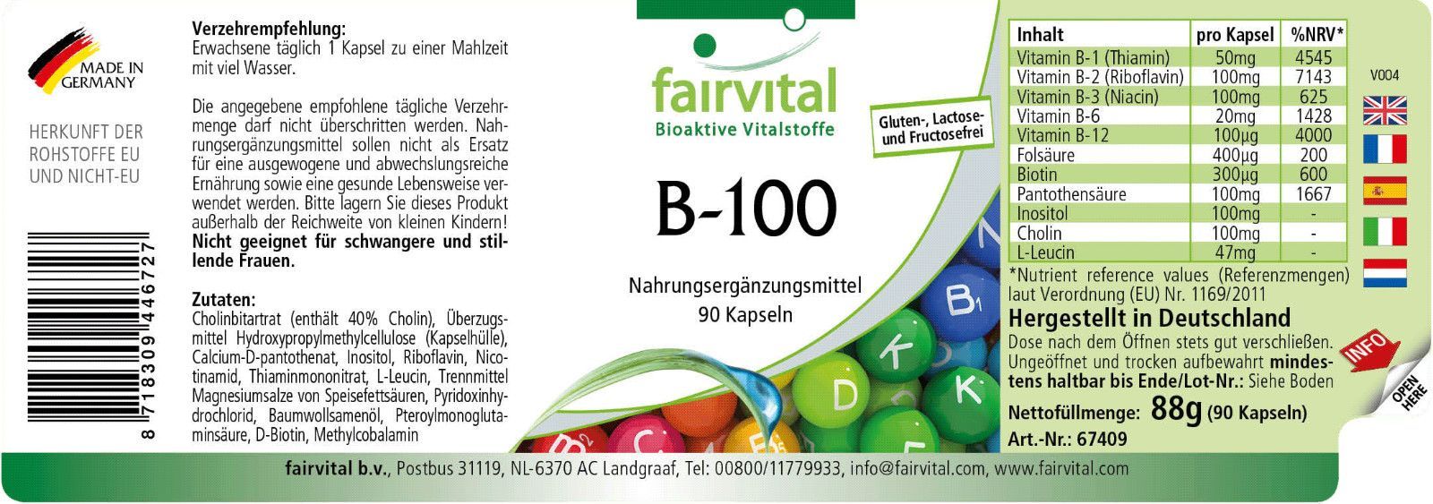 Vitamin B-100 Komplex 90 Kapseln - fairvital