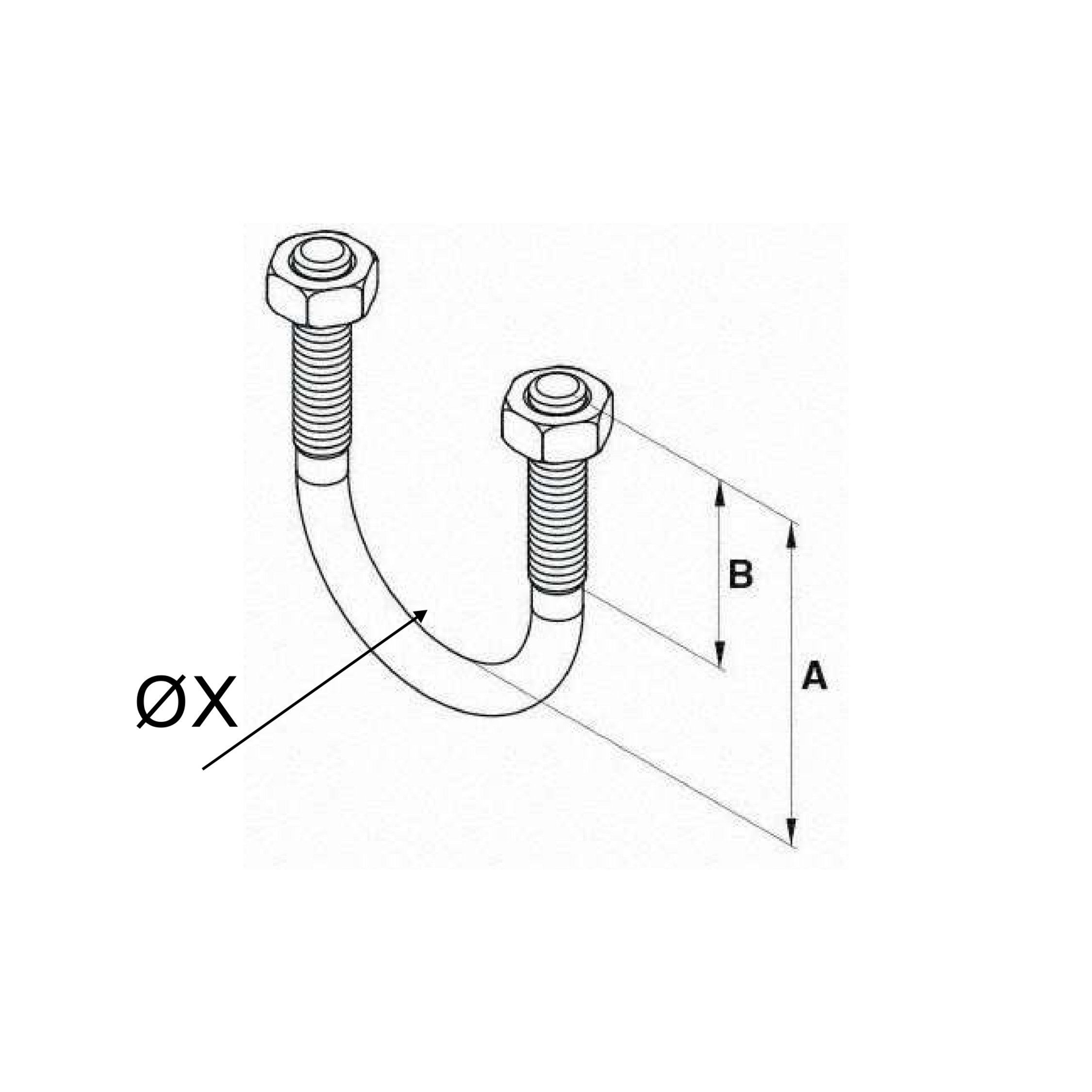 B?gelschraube / Rundb?gel M10, 1" (33,7 mm), feuerverzinkt, inkl. Muttern