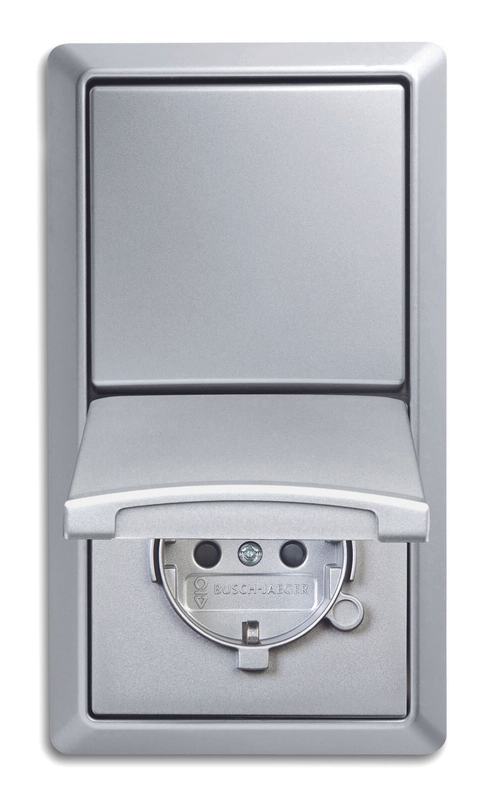 B + J Allwetter IP44 Steckdose + Schalter + Abdeckrahmen Set Alu
