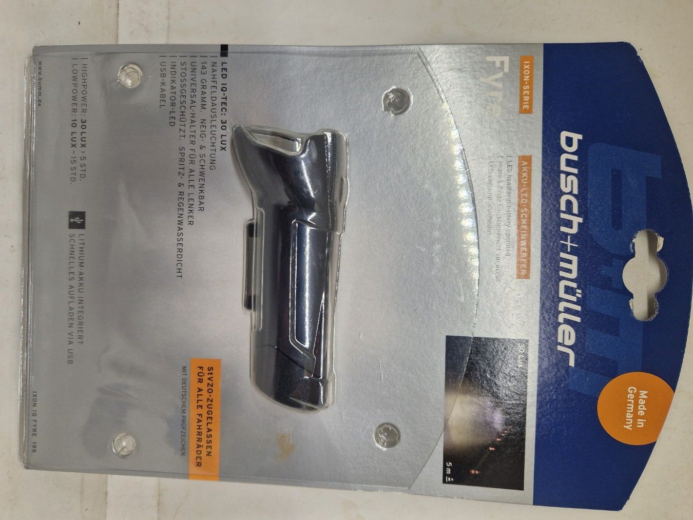 B&M LED-Frontlampe 30 LUX IXON Fyre inkl. Halter (alle Lenker-dmr.) | Befestigun